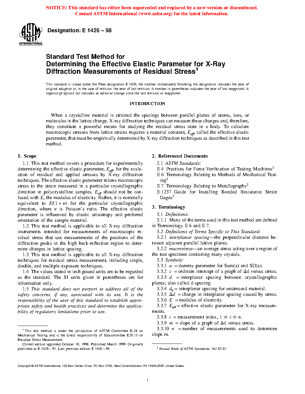 6.1 This test method provides standard procedures for experimentally determining the XEC for use in the measurement of residual and applied stresses using x-ray diffraction techniques. It also provides a standard means of reporting the precision of the XEC.