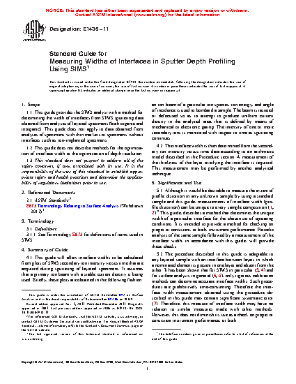 1.1 This guide provides the SIMS analyst with a method for determining the width of interfaces from SIMS sputtering data obtained from analyses of layered specimens. This guide does not apply to data obtained from analyses of specimens with thin markers or specimens without interfaces such as ion-implanted specimens.