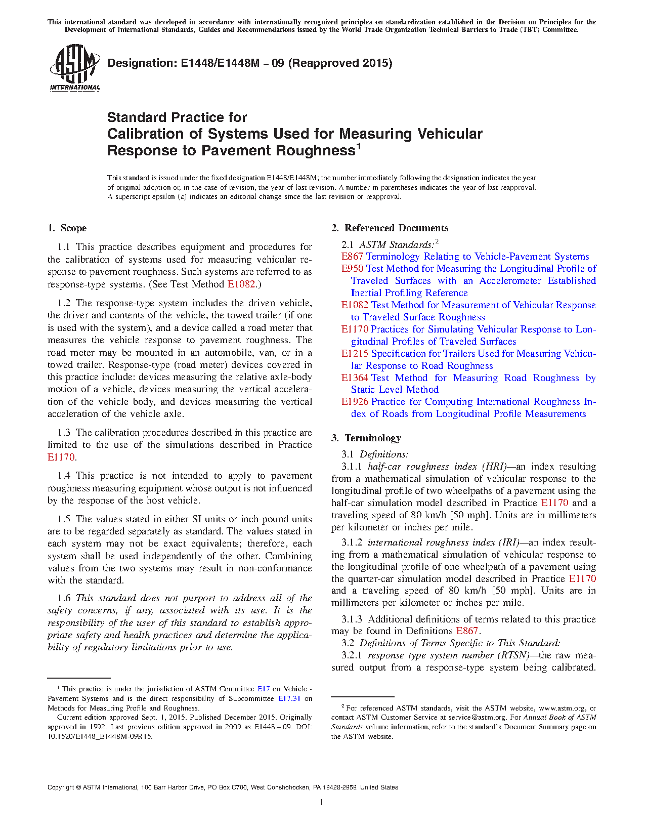 1.4 This practice is not intended to apply to pavement roughness measuring equipment whose output is not influenced by the response of the host vehicle.
