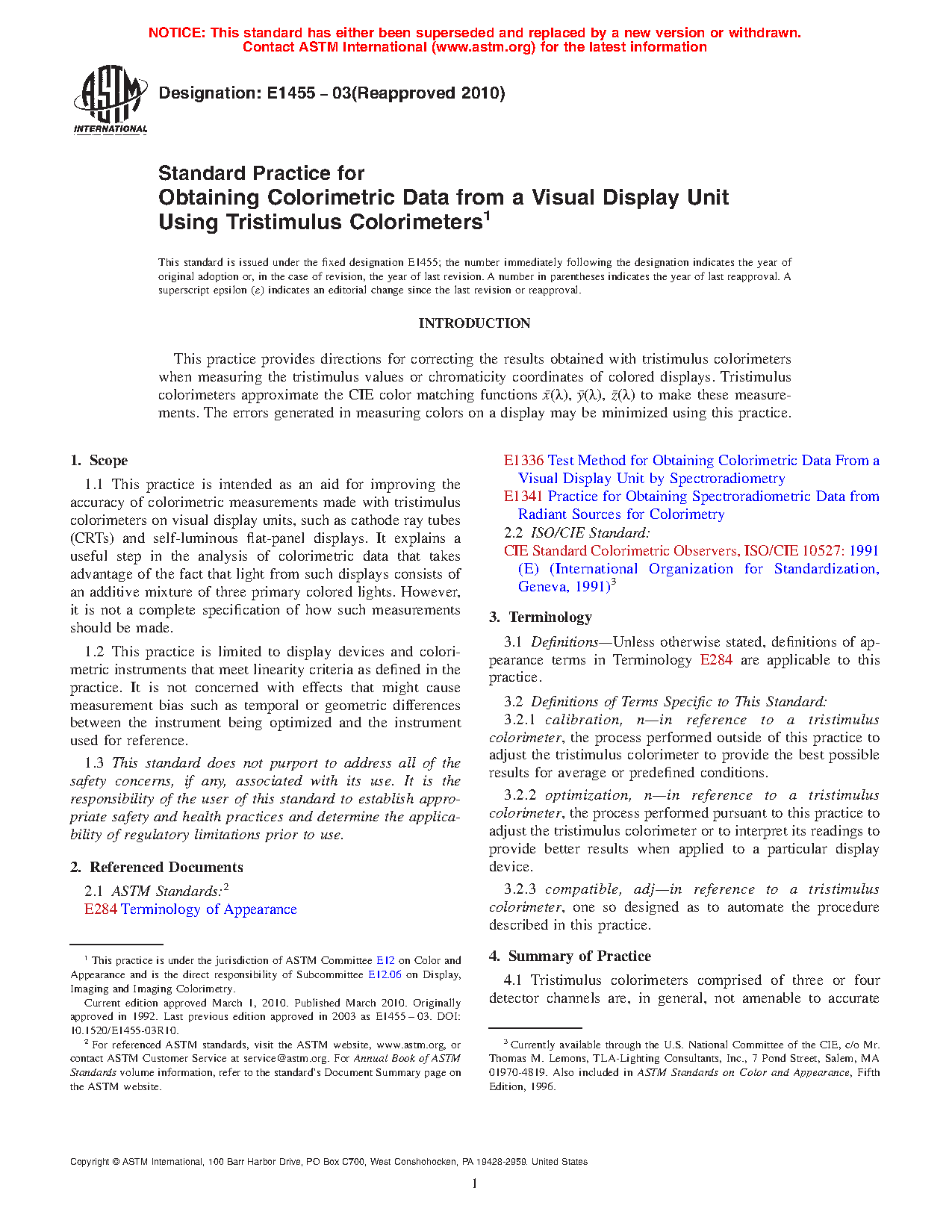 1.2 This practice is limited to display devices and colorimetric instruments that meet linearity criteria as defined in the practice. It is not concerned with effects that might cause measurement bias such as temporal or geometric differences between the instrument being optimized and the instrument used for reference.