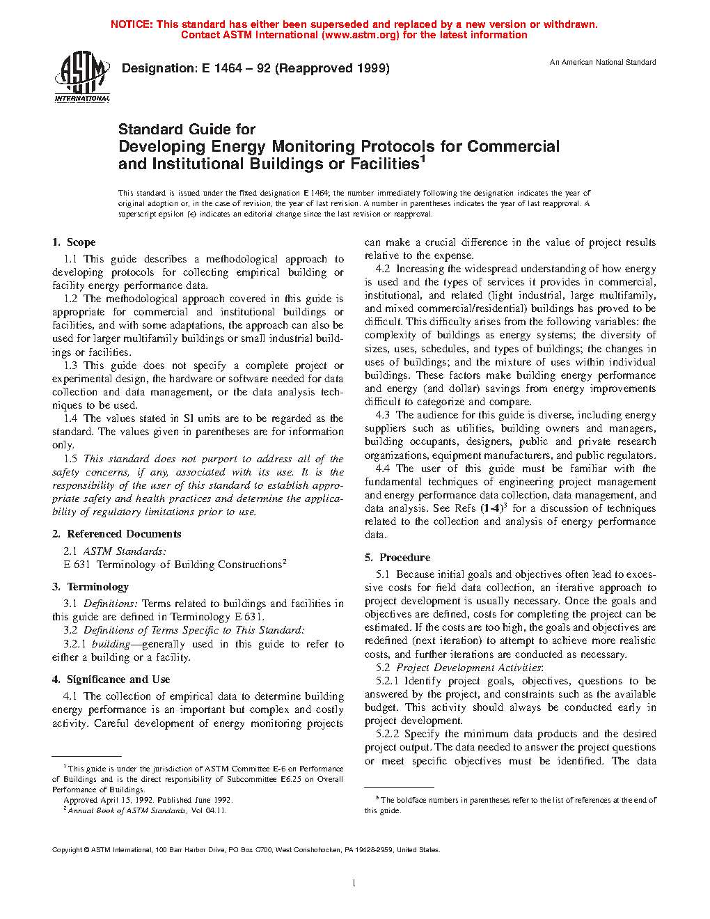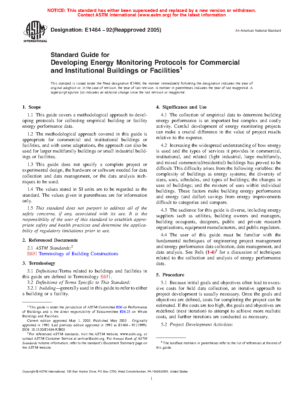 1.1 This guide describes a methodological approach to developing protocols for collecting empirical building or facility energy performance data.