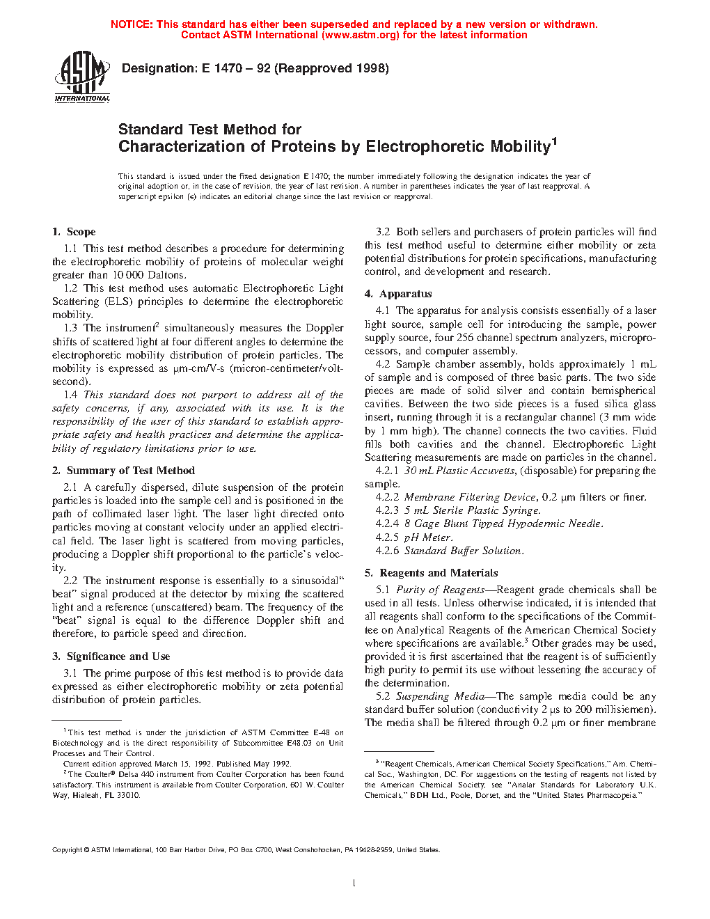 1.1 This test method describes a procedure for determining the electrophoretic mobility of proteins of molecular weight greater than 10 000 Daltons.