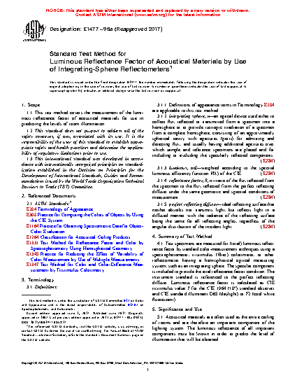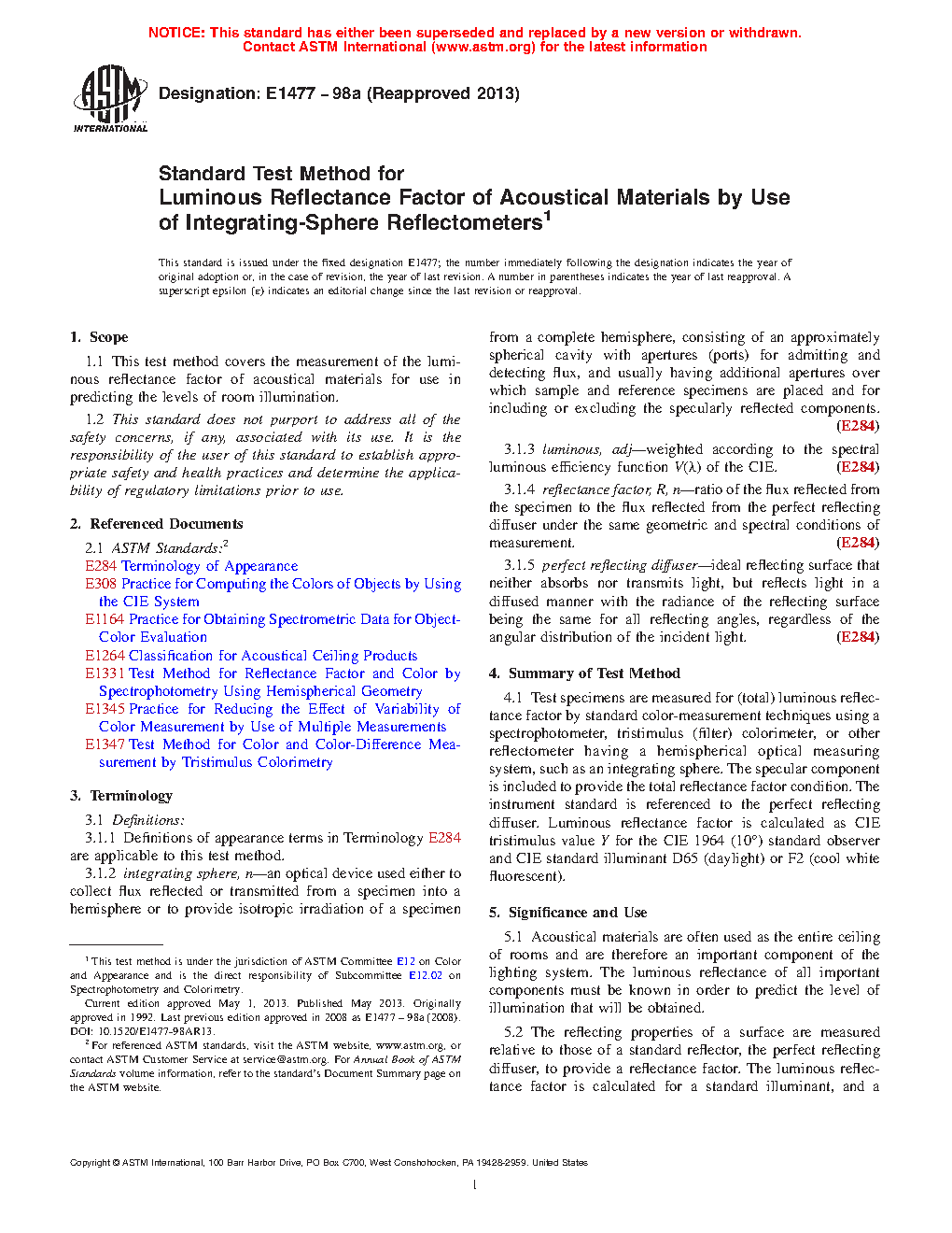 Standard Test Method for Luminous Reflectance Factor of Acoustical Materials by Use of Integrating-Sphere Reflectometers