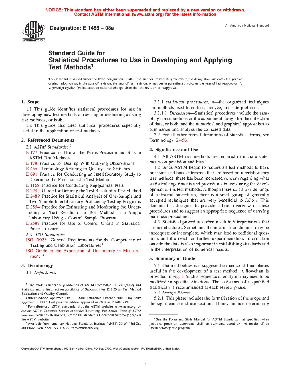 Since ASTM began to require all test methods to have precision and bias statements that are based on interlaboratory test methods, there has been increased concern regarding what statistical experiments and procedures to use during the development of the test methods. Although there exists a wide range of statistical procedures, there is a small group of generally accepted techniques that are very beneficial to follow. This document is designed to provide a brief overview of these procedures and to suggest an appropriate sequence of carrying out these procedures.