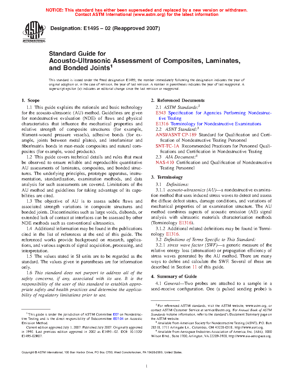 1.2 This guide covers technical details and rules that must be observed to ensure reliable and reproducible quantitative AU assessments of laminates, composites, and bonded structures. The underlying principles, prototype apparatus, instrumentation, standardization, examination methods, and data analysis for such assessments are covered. Limitations of the AU method and guidelines for taking advantage of its capabilities are cited.