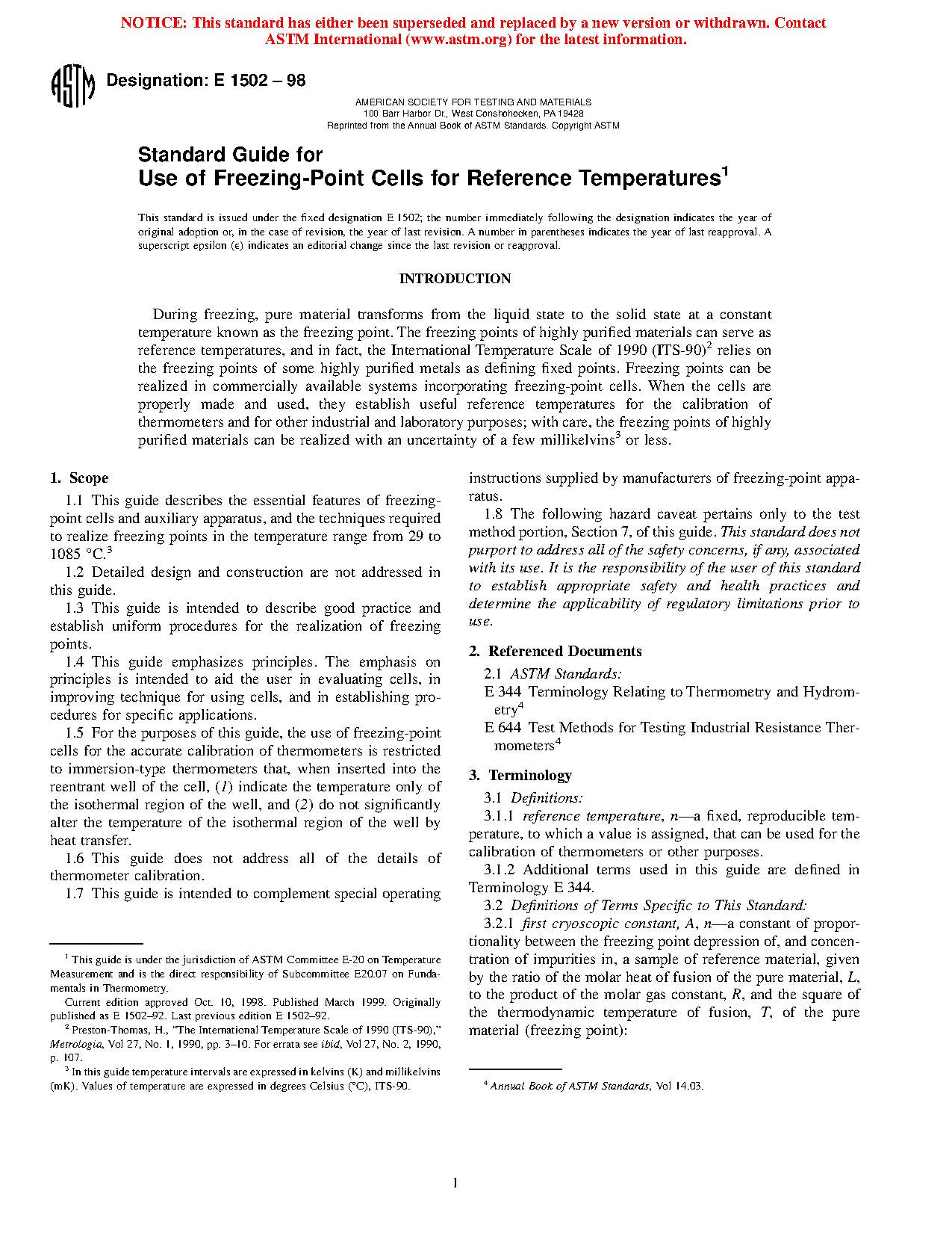 1.1 This guide describes the essential features of fixed-point cells and auxiliary apparatus, and the techniques required to realize fixed points in the temperature range from 29 °C to 1085 °C.3