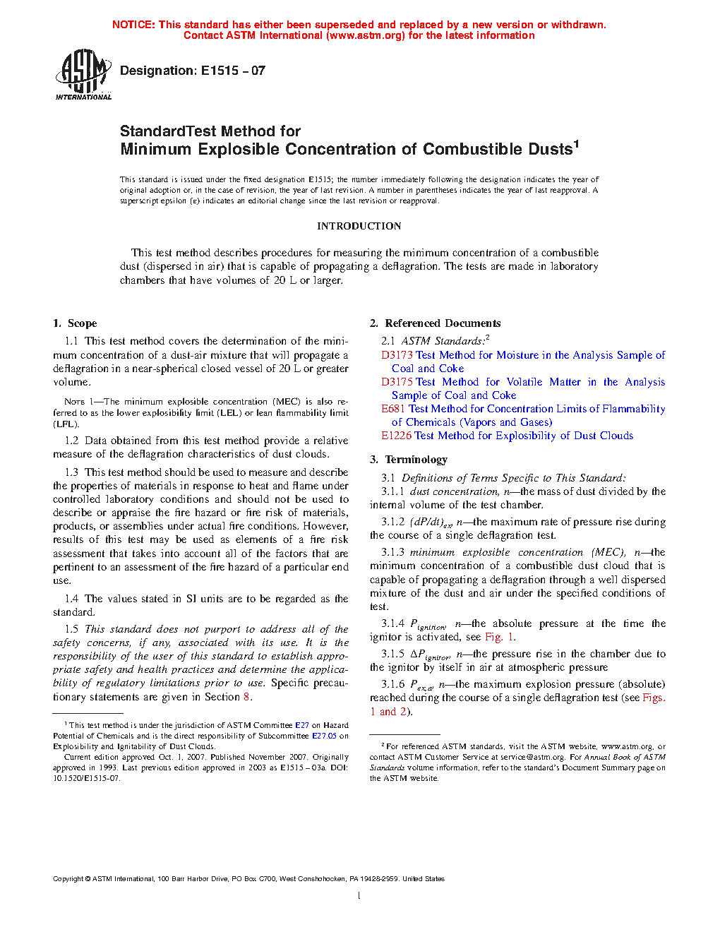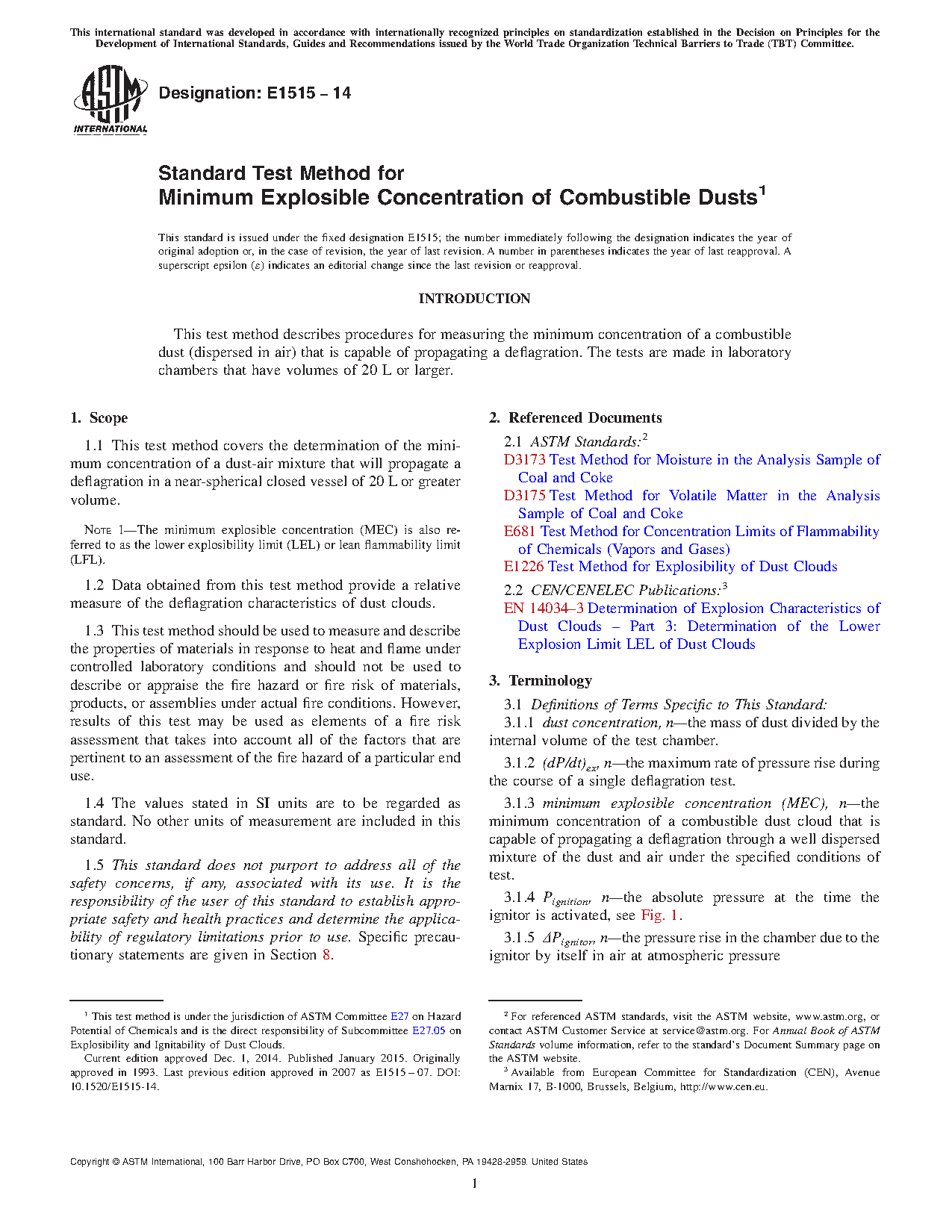 5.3 Since the MEC as measured by this test method may vary with the uniformity of the dust dispersion, energy of the ignitor, and propagation criteria, the MEC should be considered a relative rather than absolute measurement.