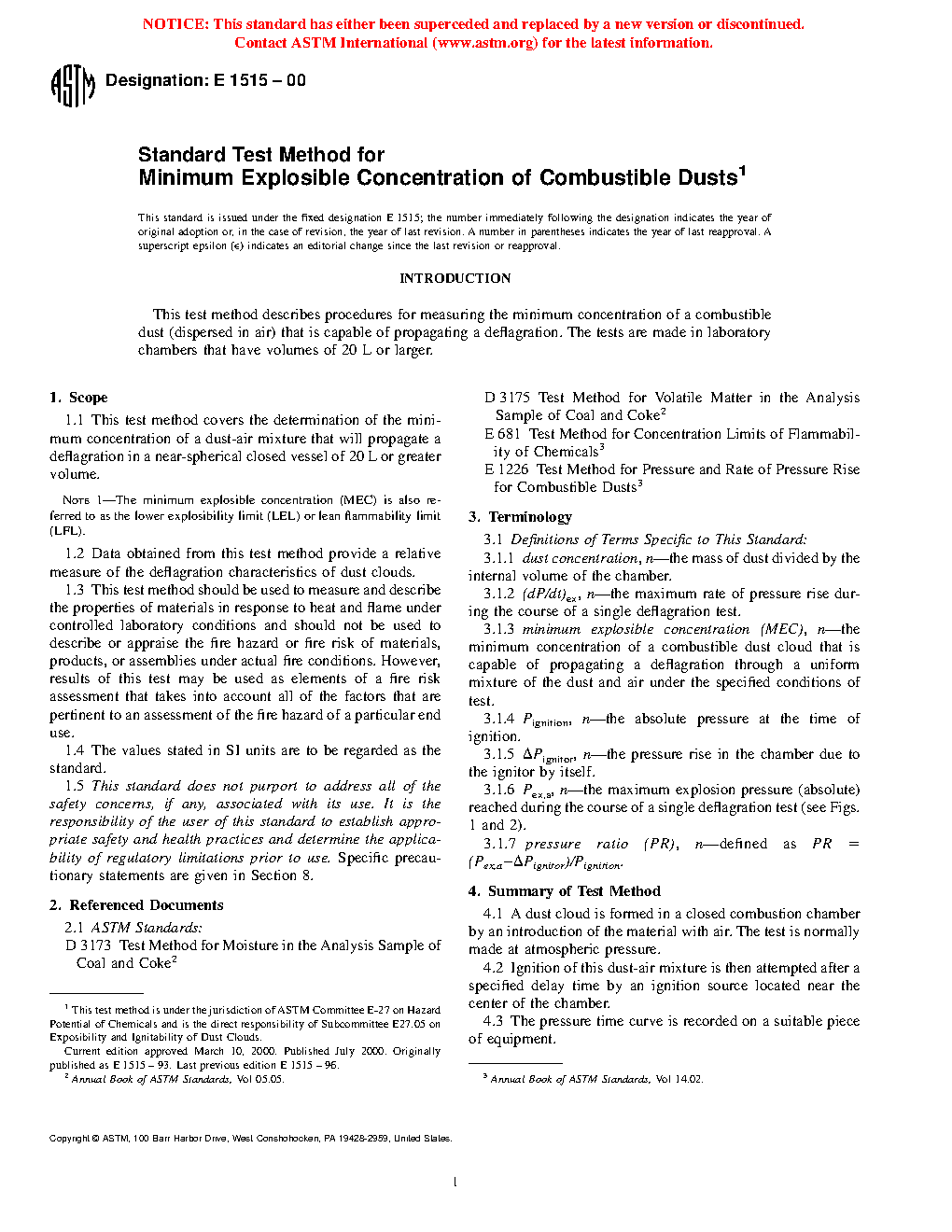 5.2 The MEC as measured by this test method provides a relative measure of the concentration of a dust cloud necessary for an explosion.