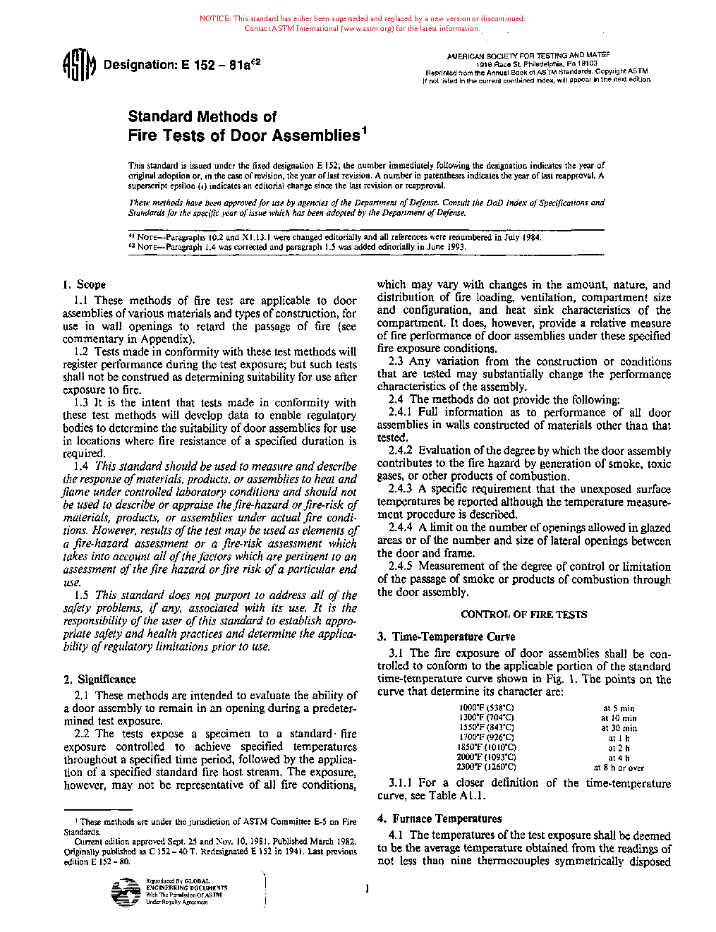 Methods of Fire Tests of Door Assemblies (Withdrawn 1995)