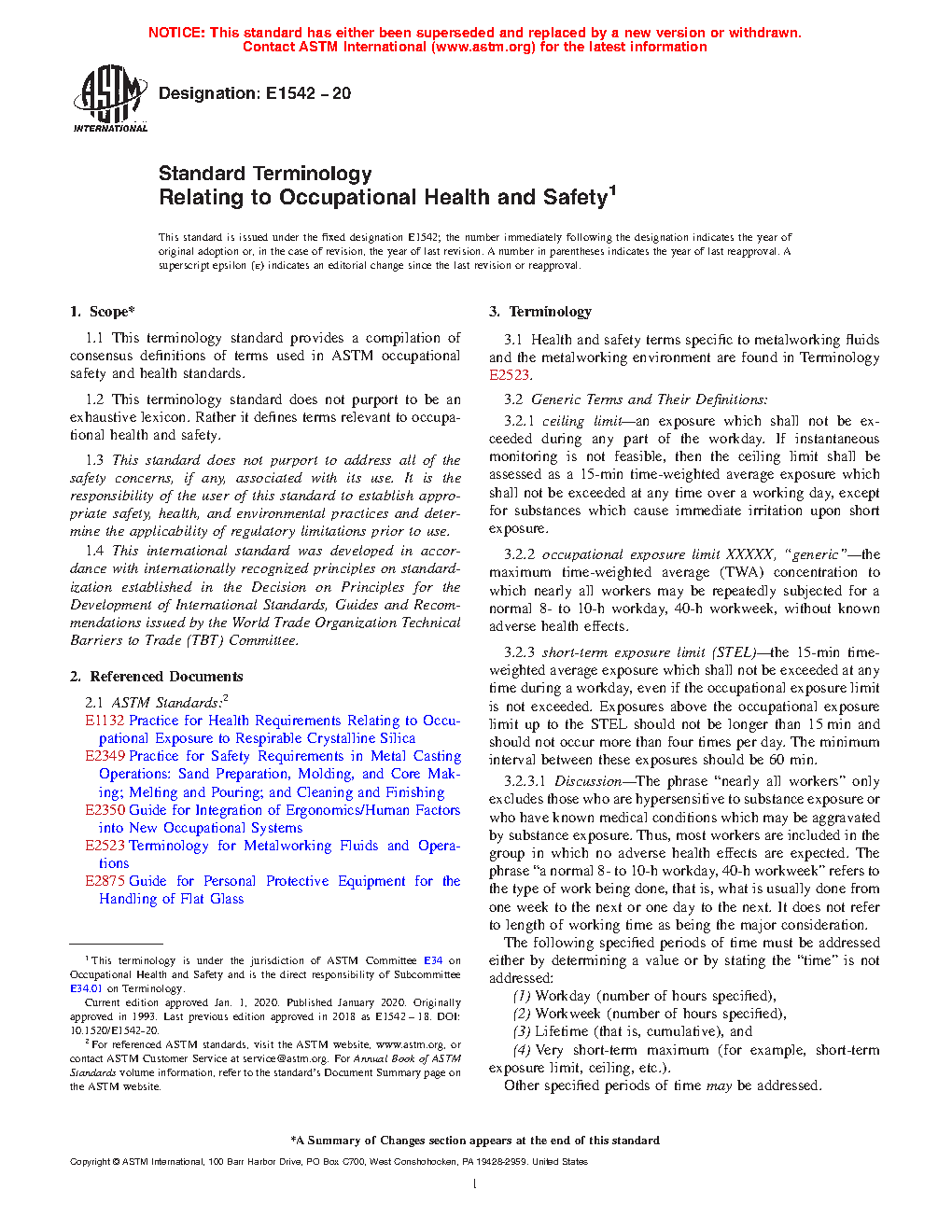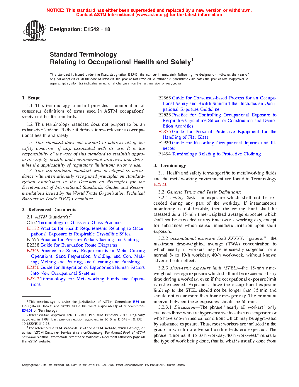 1.1 The terms in this standard are used in the fields of occupational health and of safety. The terms are used to describe the limits of exposure under different conditions, the meanings of terms used in describing events and the types of items measured. They will commonly be used to express the effect of an event or the limit of a chemical exposure on human beings.