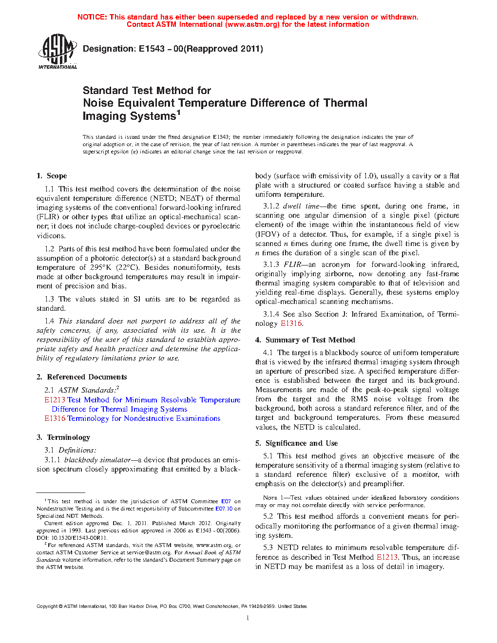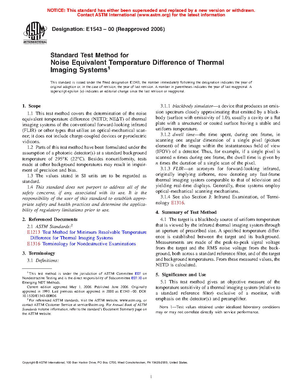 1.2 Parts of this test method have been formulated under the assumption of a photonic detector(s) at a standard background temperature of 295°K (22°C). Besides non-uniformity, tests made at other background temperatures may result in impairment of precision and bias.