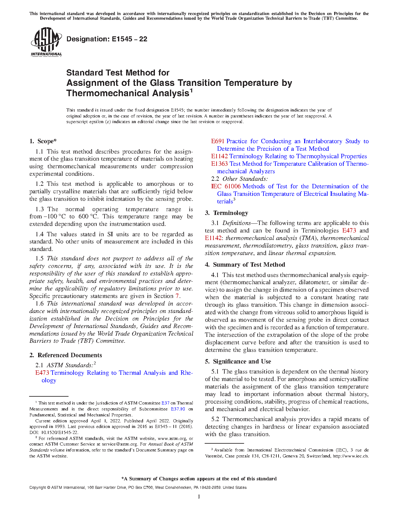 1.5 This test method is related to ISO 11359-2. ISO 11359-2 additionally covers the determination of coefficient of linear thermal expansion not covered by this test method. This test method is related to IEC 61006 but uses a slower heating rate.