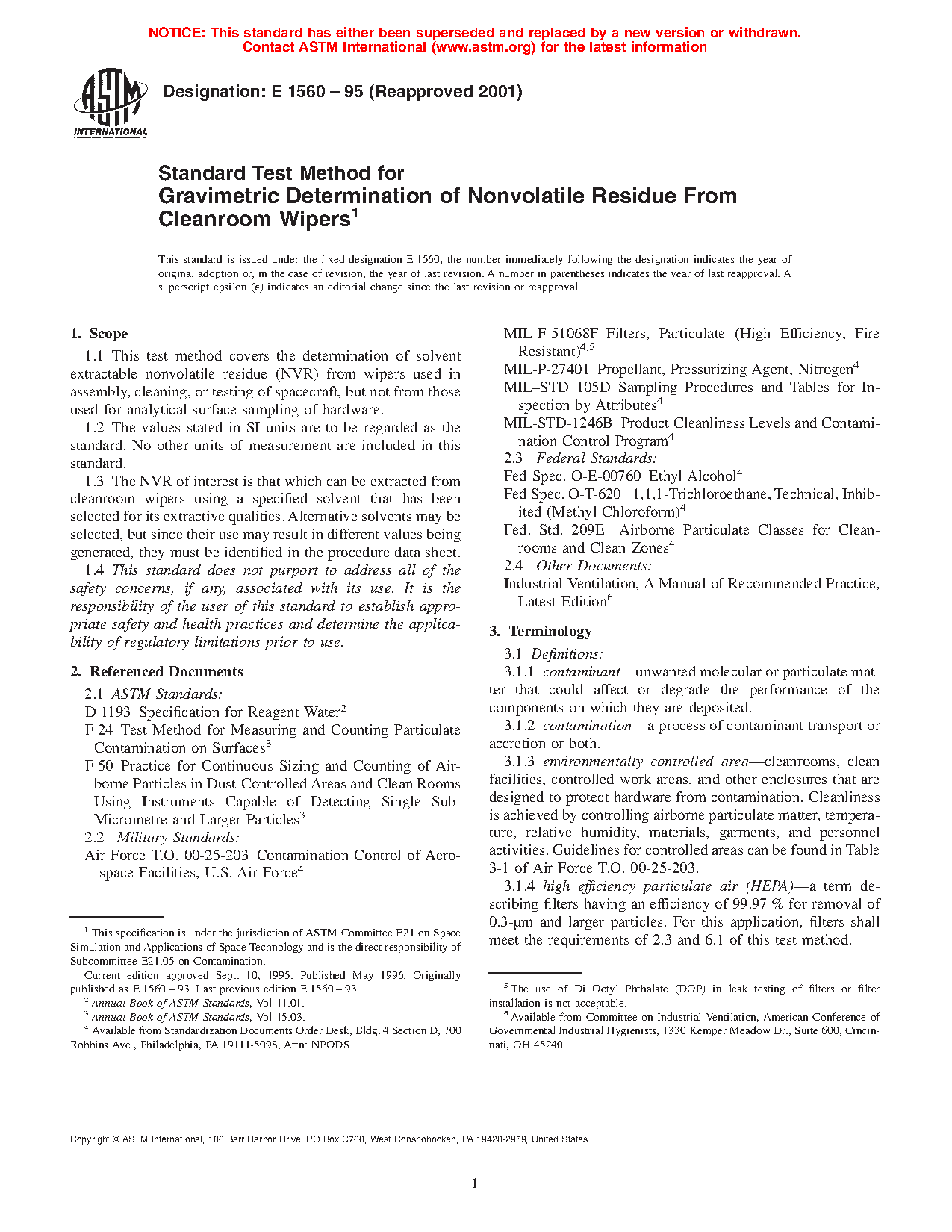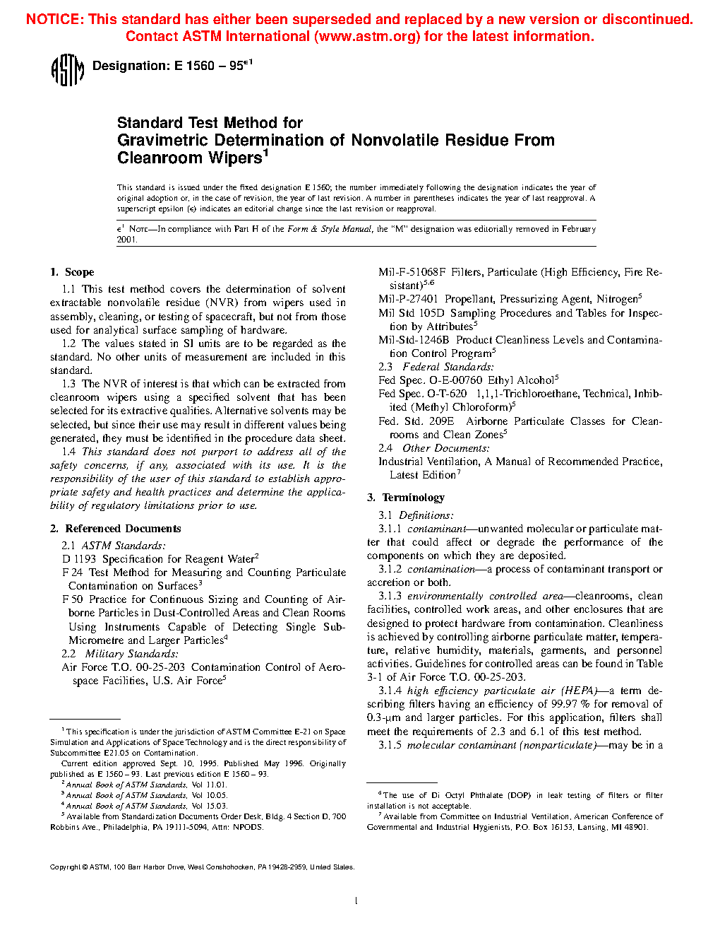 1.2 The NVR of interest is that which can be extracted from cleanroom wipers using a specified solvent that has been selected for its extractive qualities. Alternative solvents may be selected, but since their use may result in different values being generated, they must be identified in the procedure data sheet.