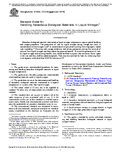 1.1 This guide covers recommended procedures for maintaining and handling hazardous biological materials at liquid nitrogen temperatures.