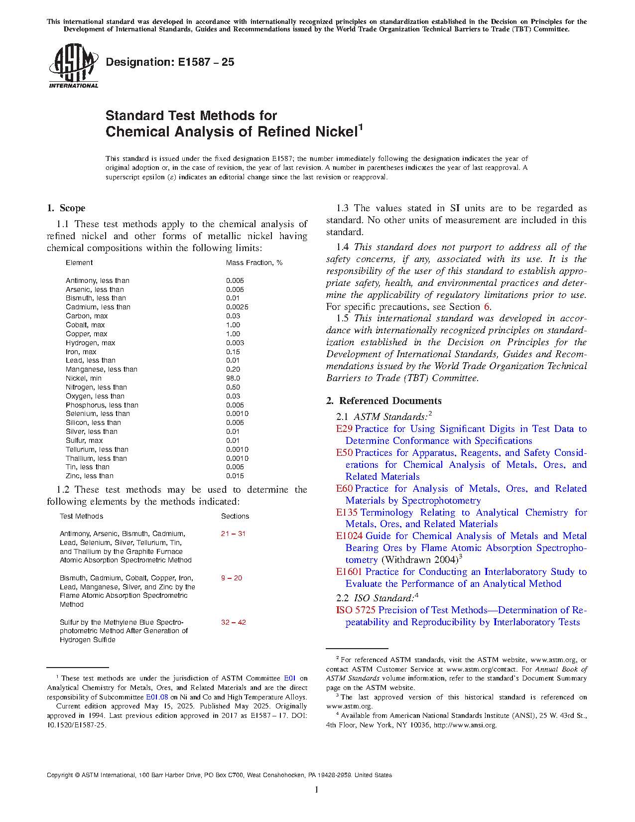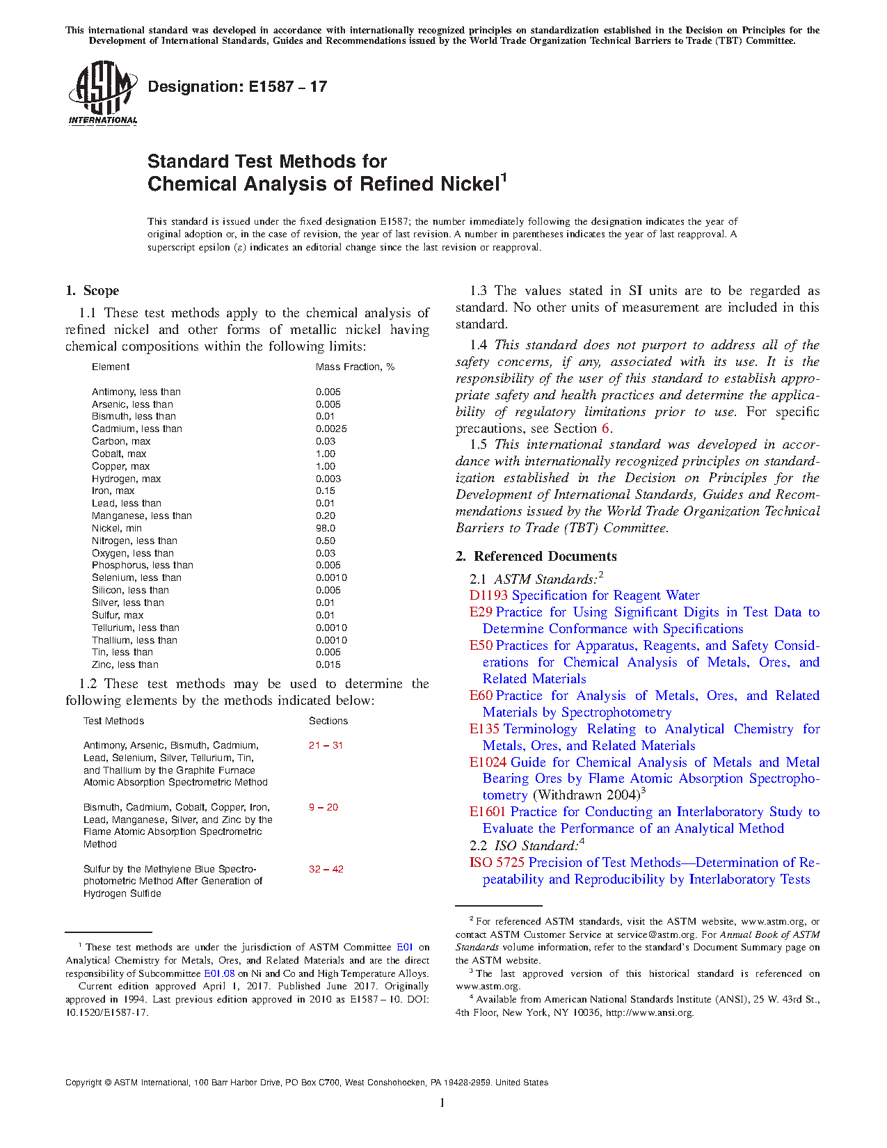 1.2 These test methods may be used to determine the following elements by the methods indicated below: