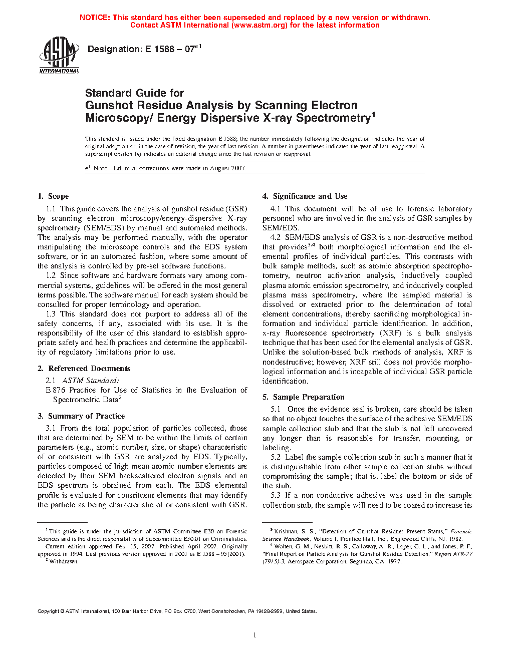 5.1 This document will be of use to forensic laboratory personnel who are involved in the analysis of GSR samples by SEM/EDS (5).