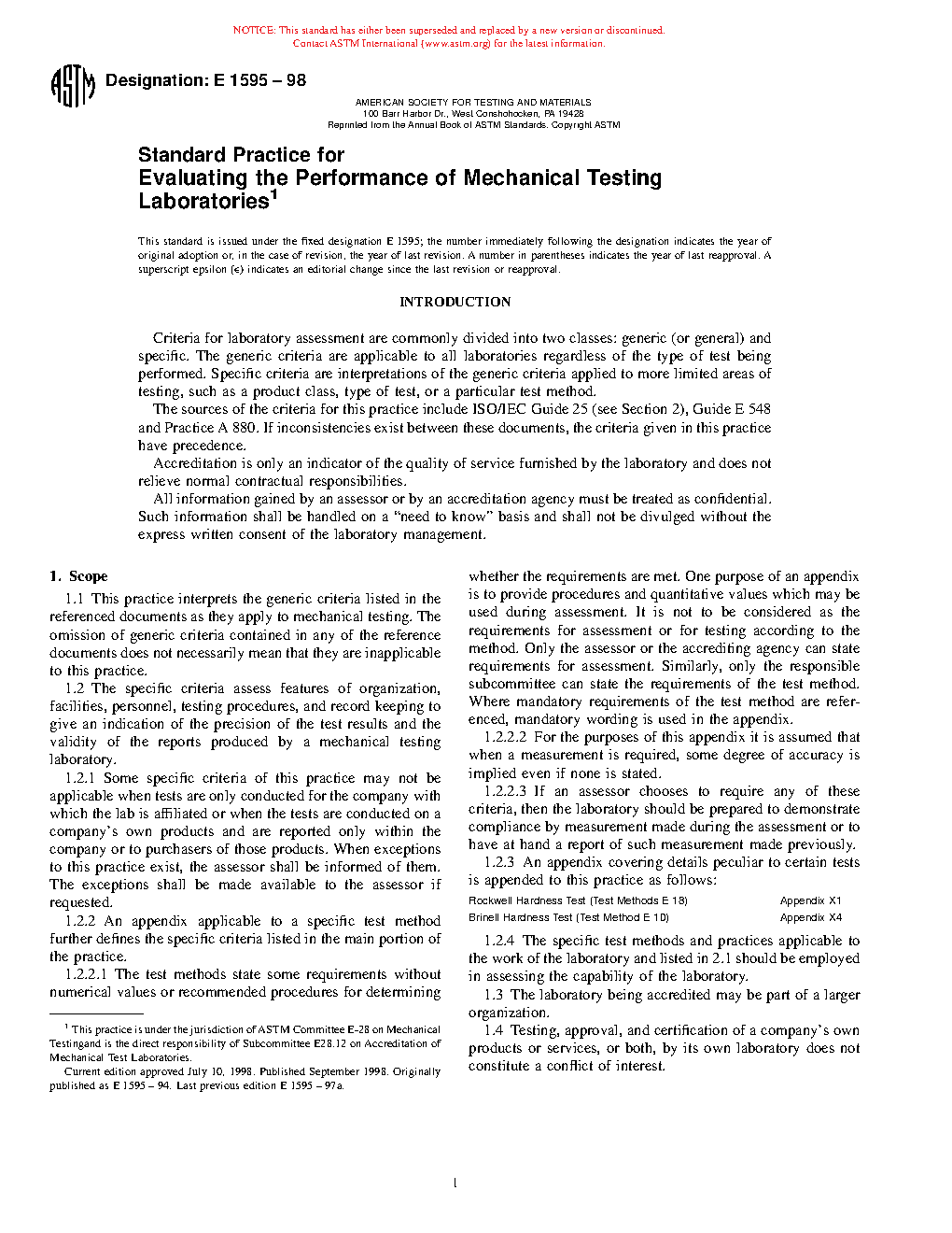 1.2 The specific criteria assess features of organization, facilities, personnel, testing procedures, and record keeping to give an indication of the precision of the test results and the validity of the reports produced by a mechanical testing laboratory.