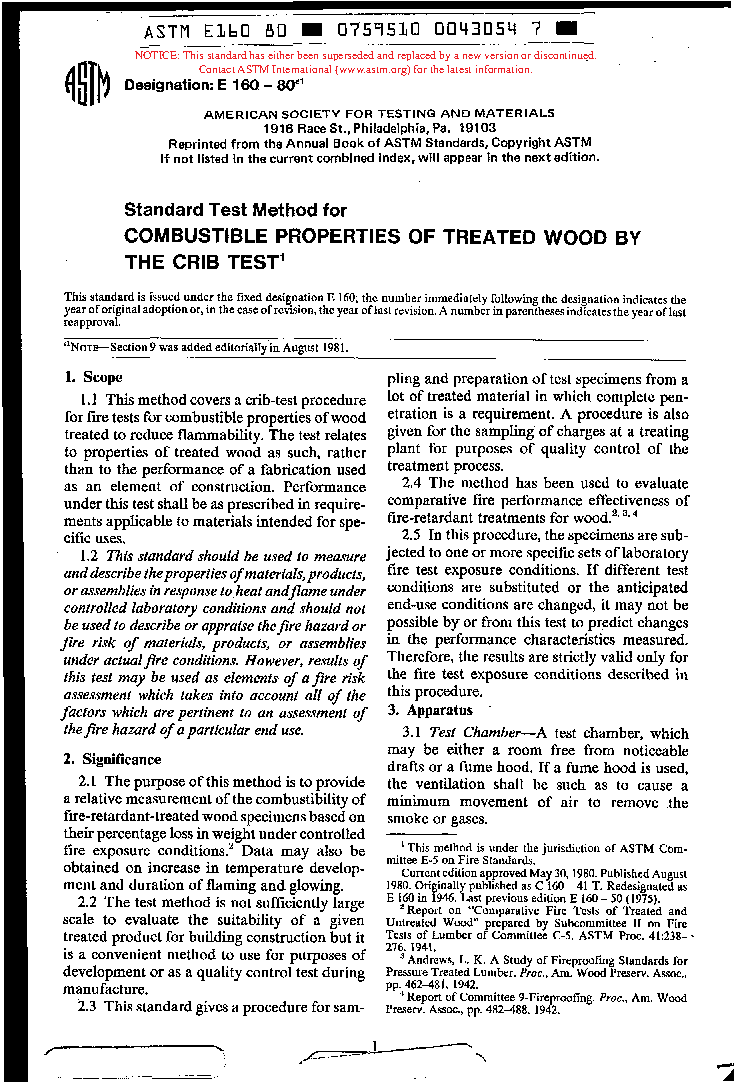 Test Method for Combustible Properties of Treated Wood by the Crib Test (Withdrawn 1993)