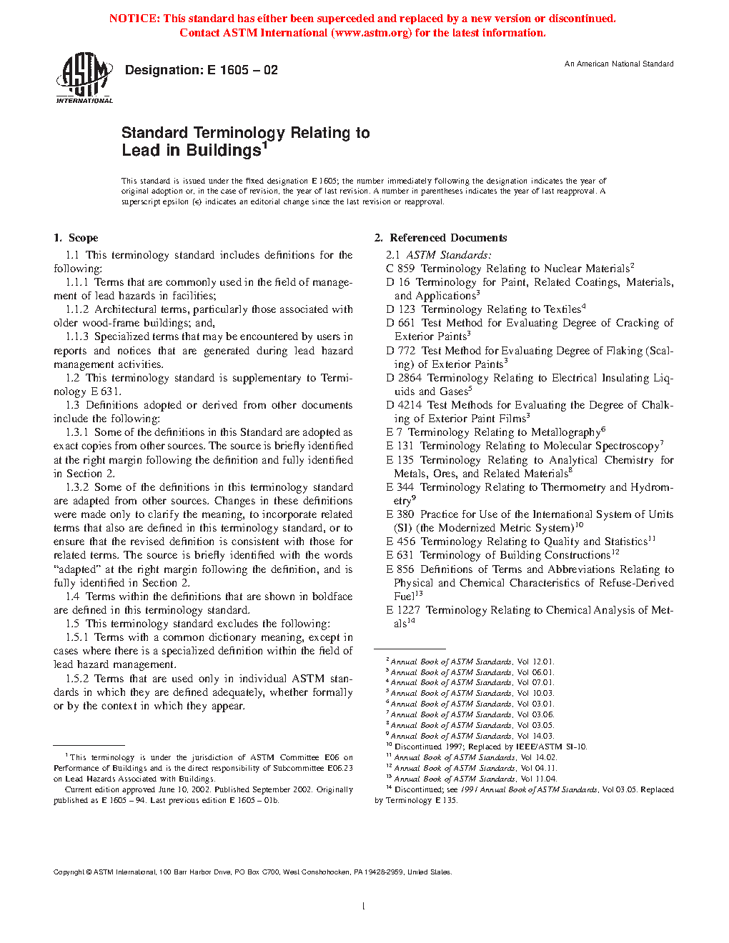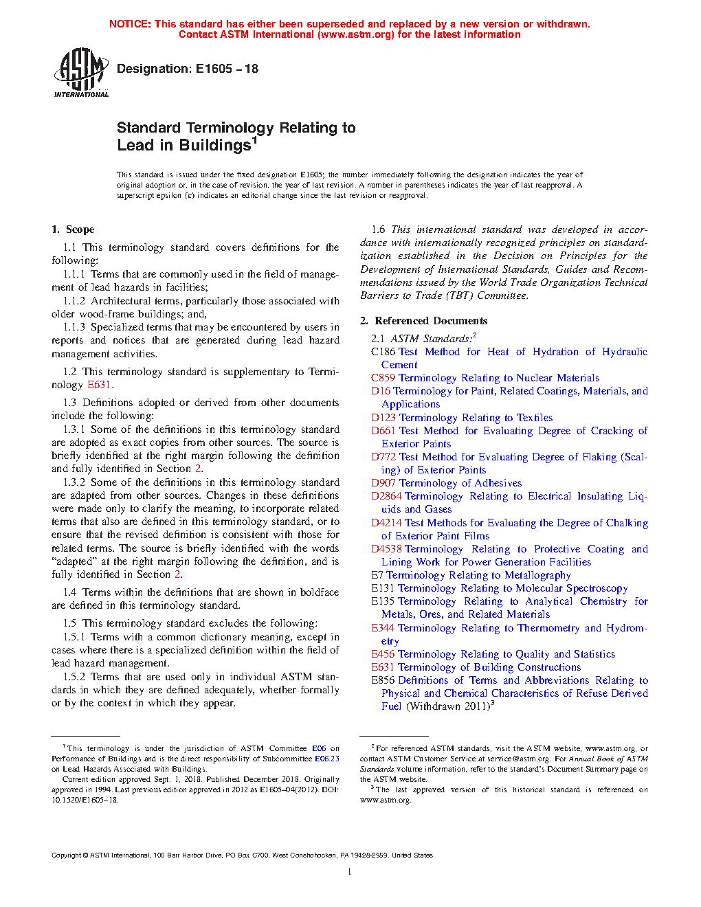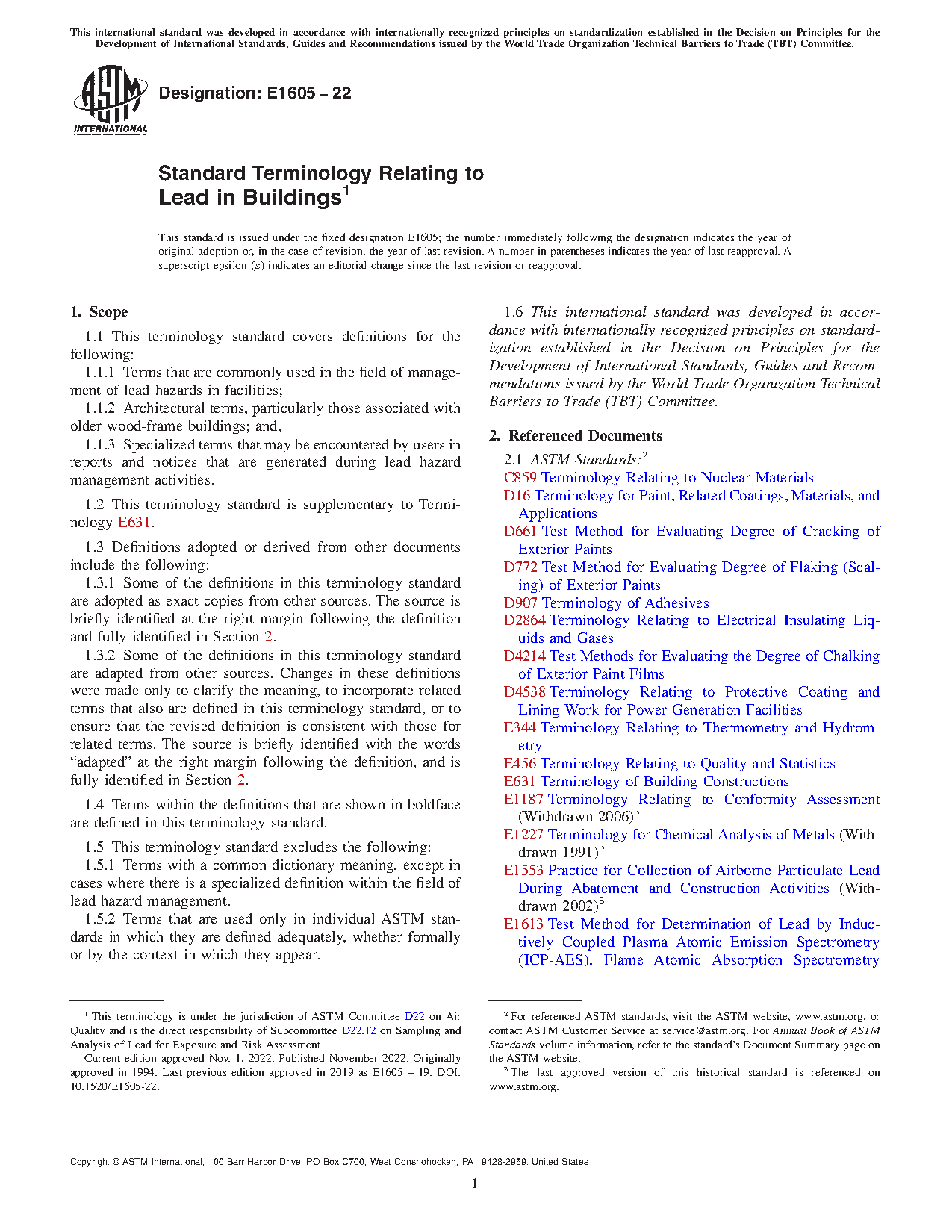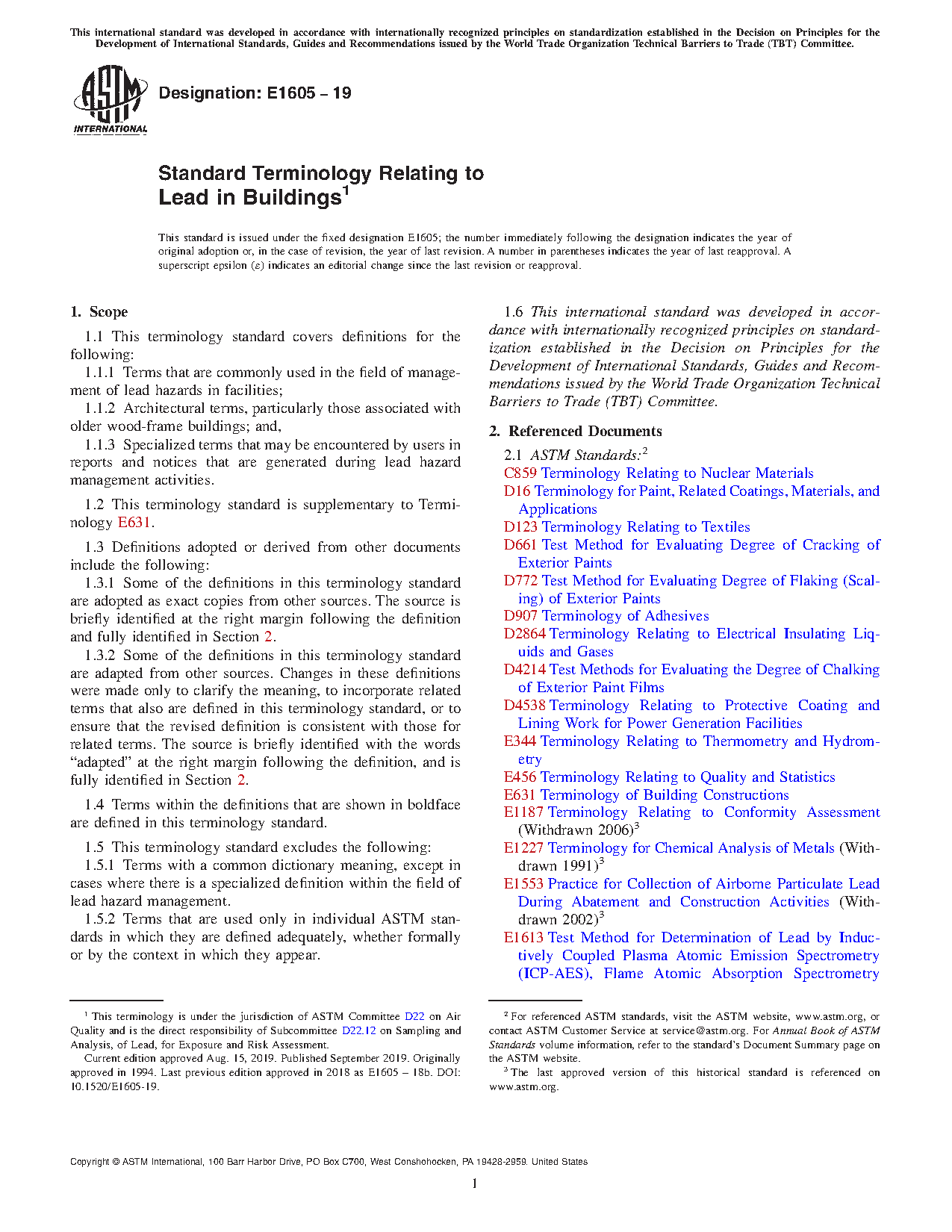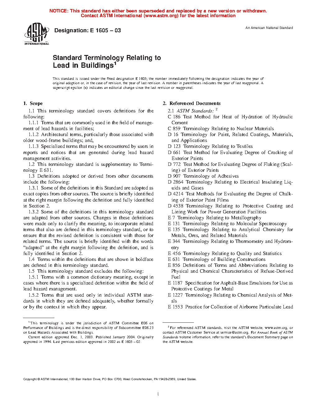 The purpose of this terminology standard is to help users understand and apply the large number of specialized terms used in connection with the management of lead hazards by providing a single, comprehensive, and consistent terminology.