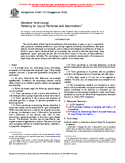 1.1 The terms covered in this terminology apply to two broad, generic classifications; terms related to characterizing liquid particles and terms relating to the process of atomization.