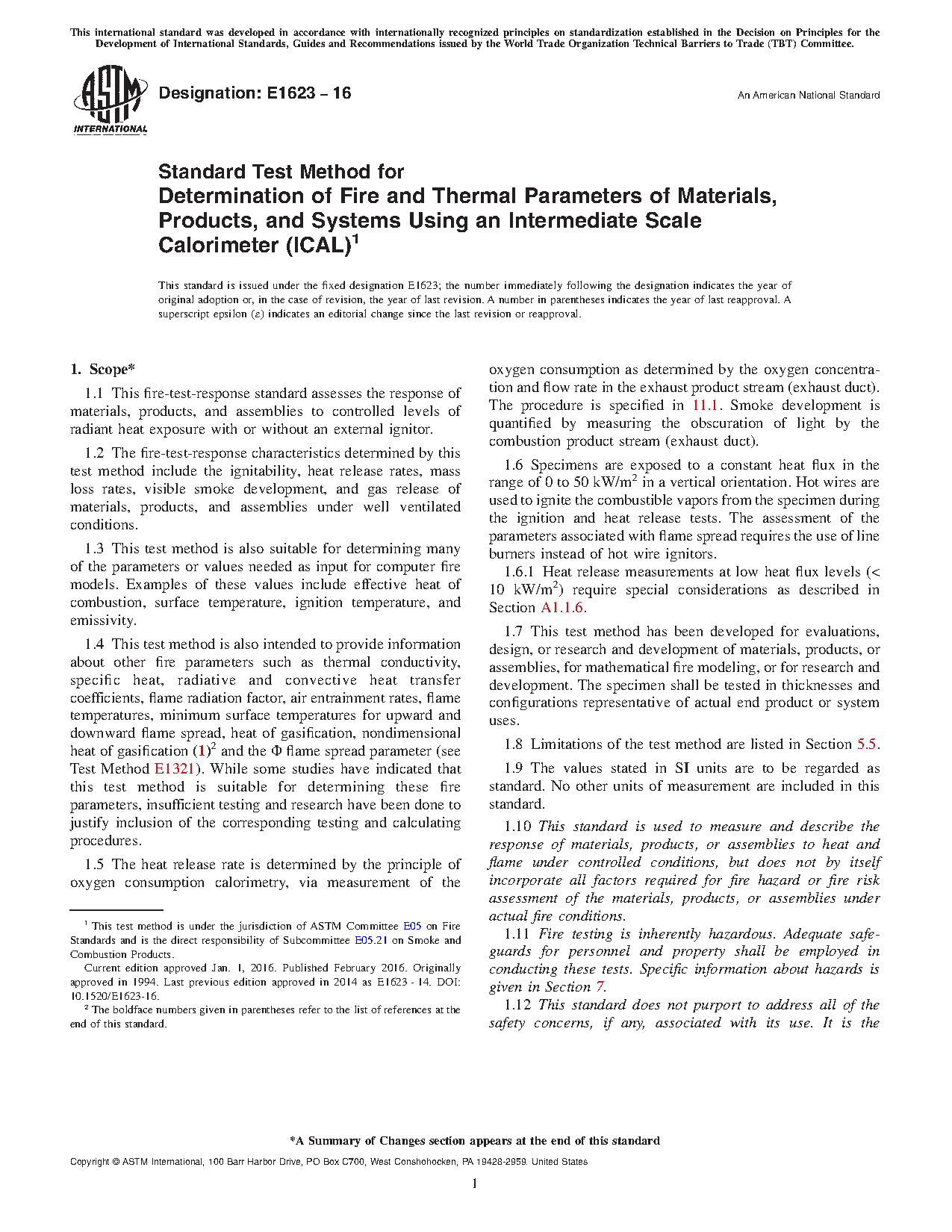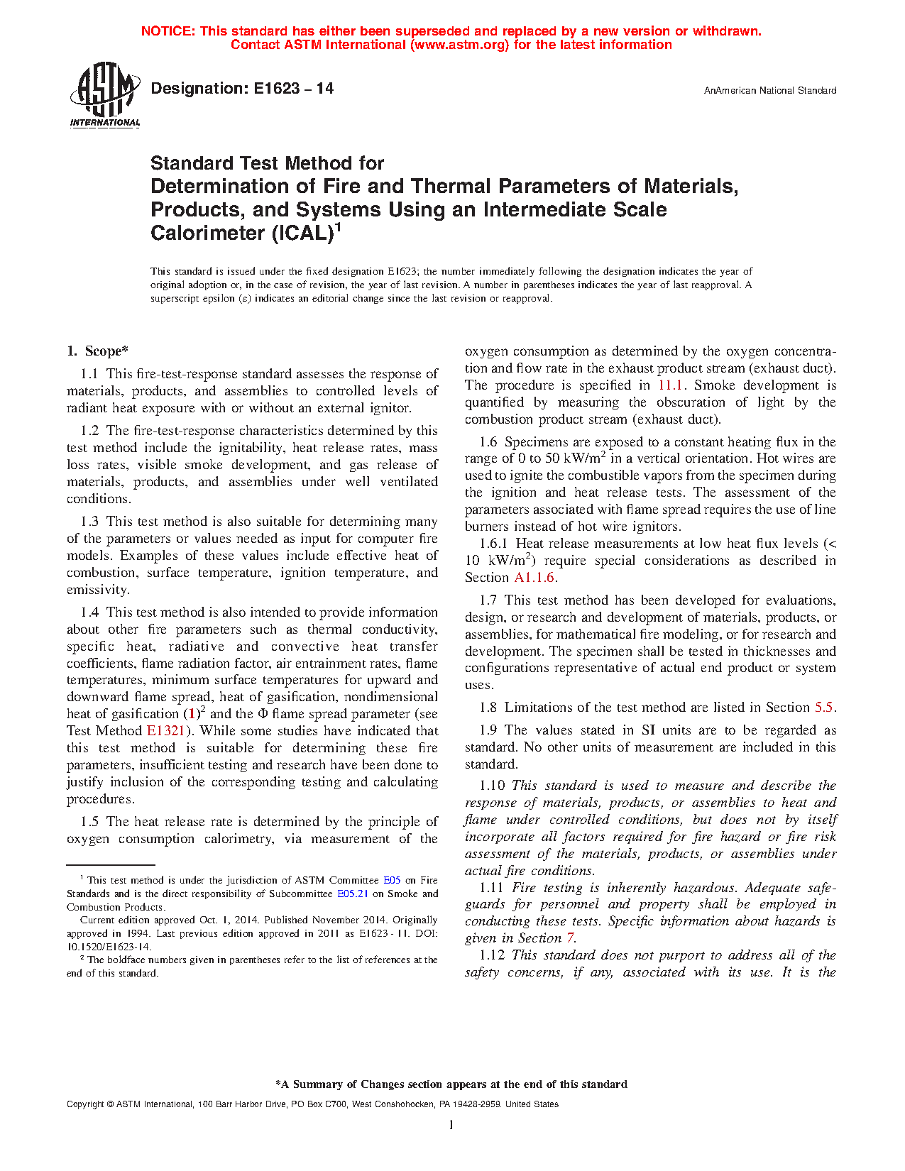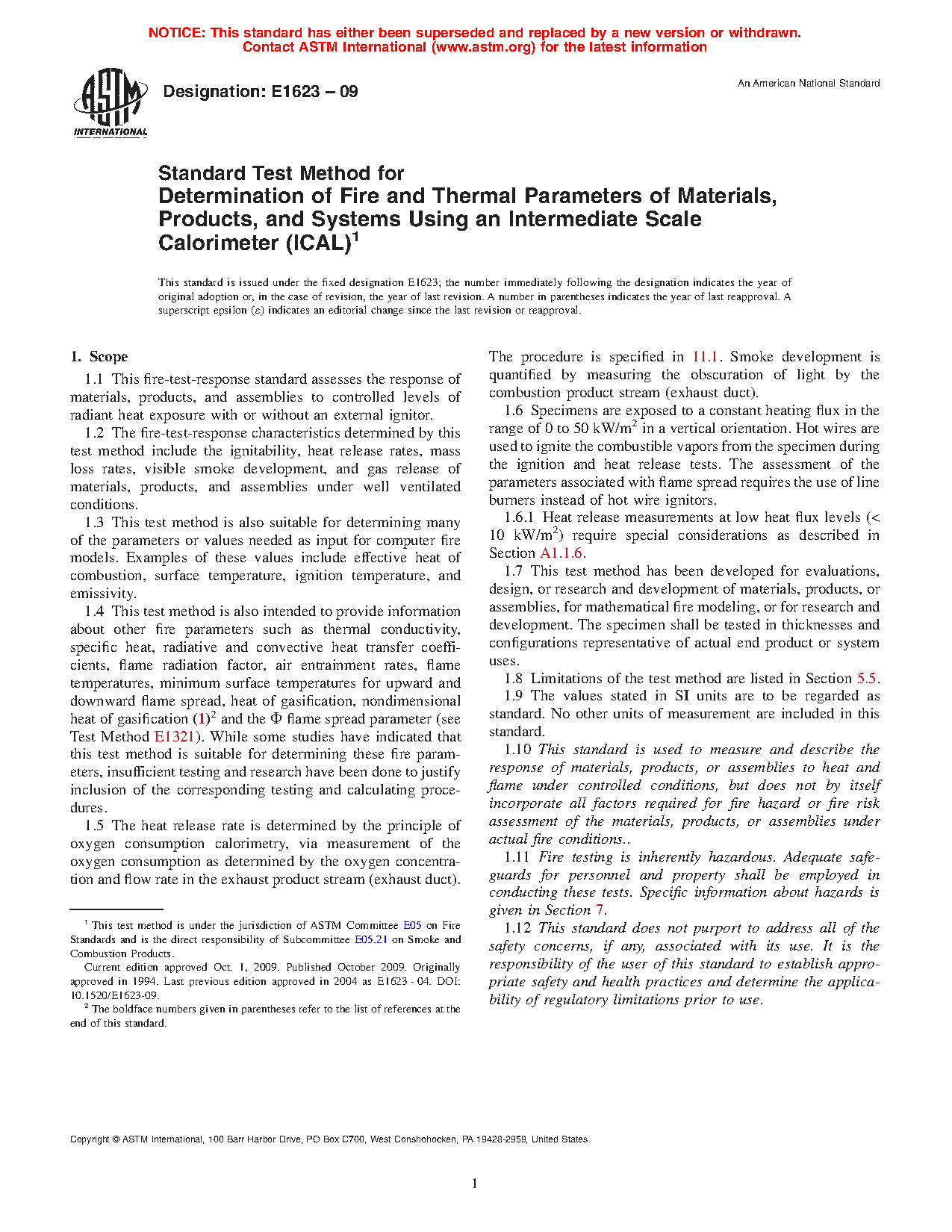 1.11 Fire testing is inherently hazardous. Adequate safeguards for personnel and property shall be employed in conducting these tests. Specific information about hazards is given in Section 7.