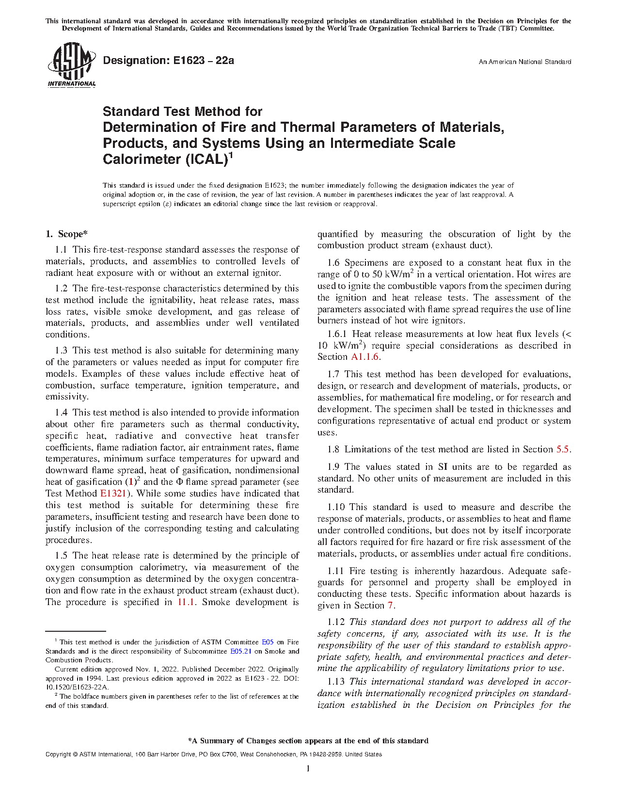 1.10 This standard is used to measure and describe the response of materials, products, or assemblies to heat and flame under controlled conditions, but does not by itself incorporate all factors required for fire hazard or fire risk assessment of the materials, products, or assemblies under actual fire conditions..