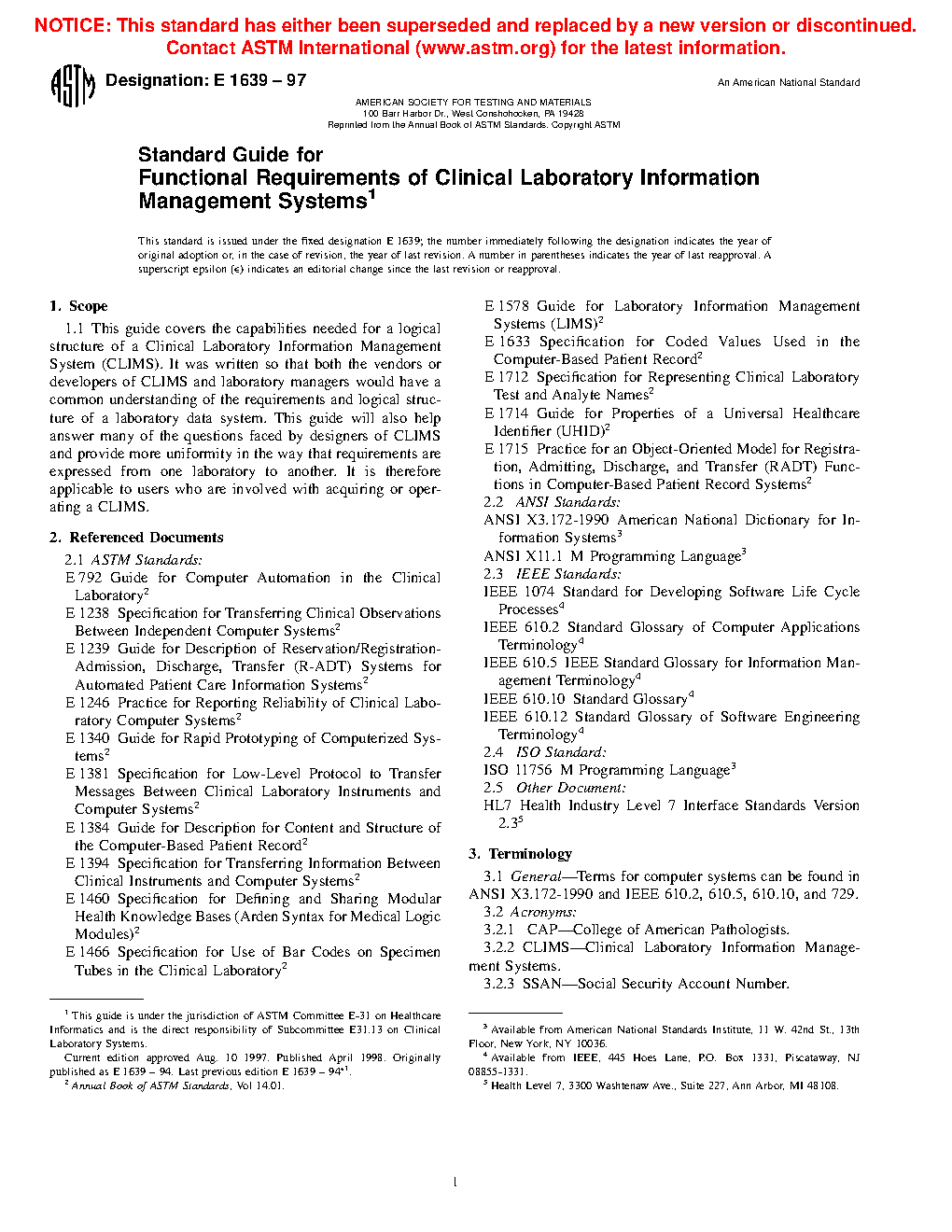 Standard Guide for Functional Requirements of Clinical Laboratory Information Management Systems