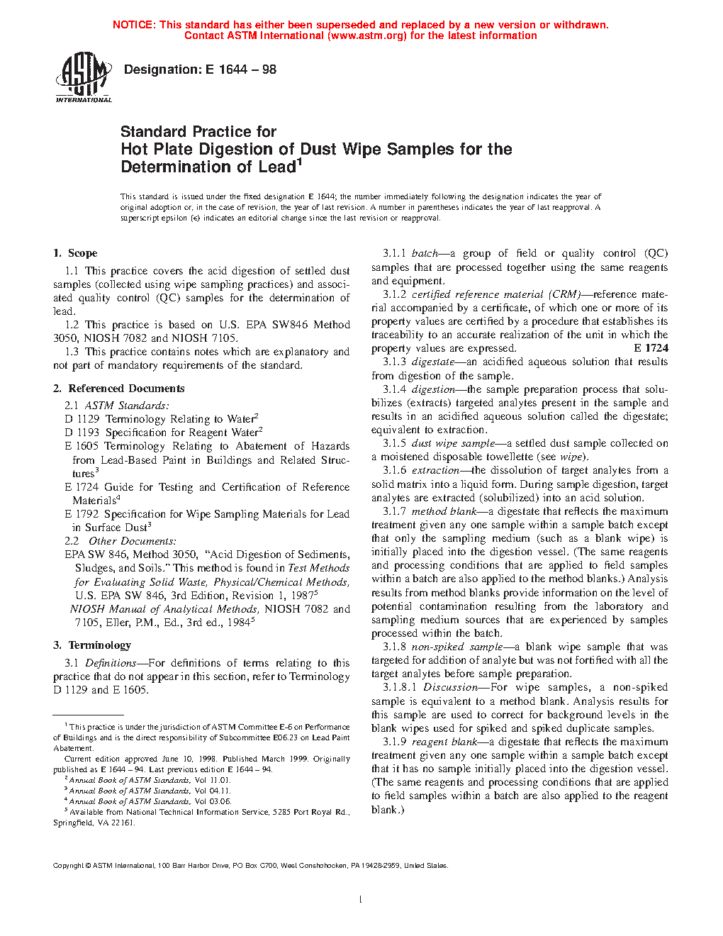 5.1 This practice is intended for the digestion of lead in dust wipe samples collected during various lead hazard activities performed in and around buildings and related structures.