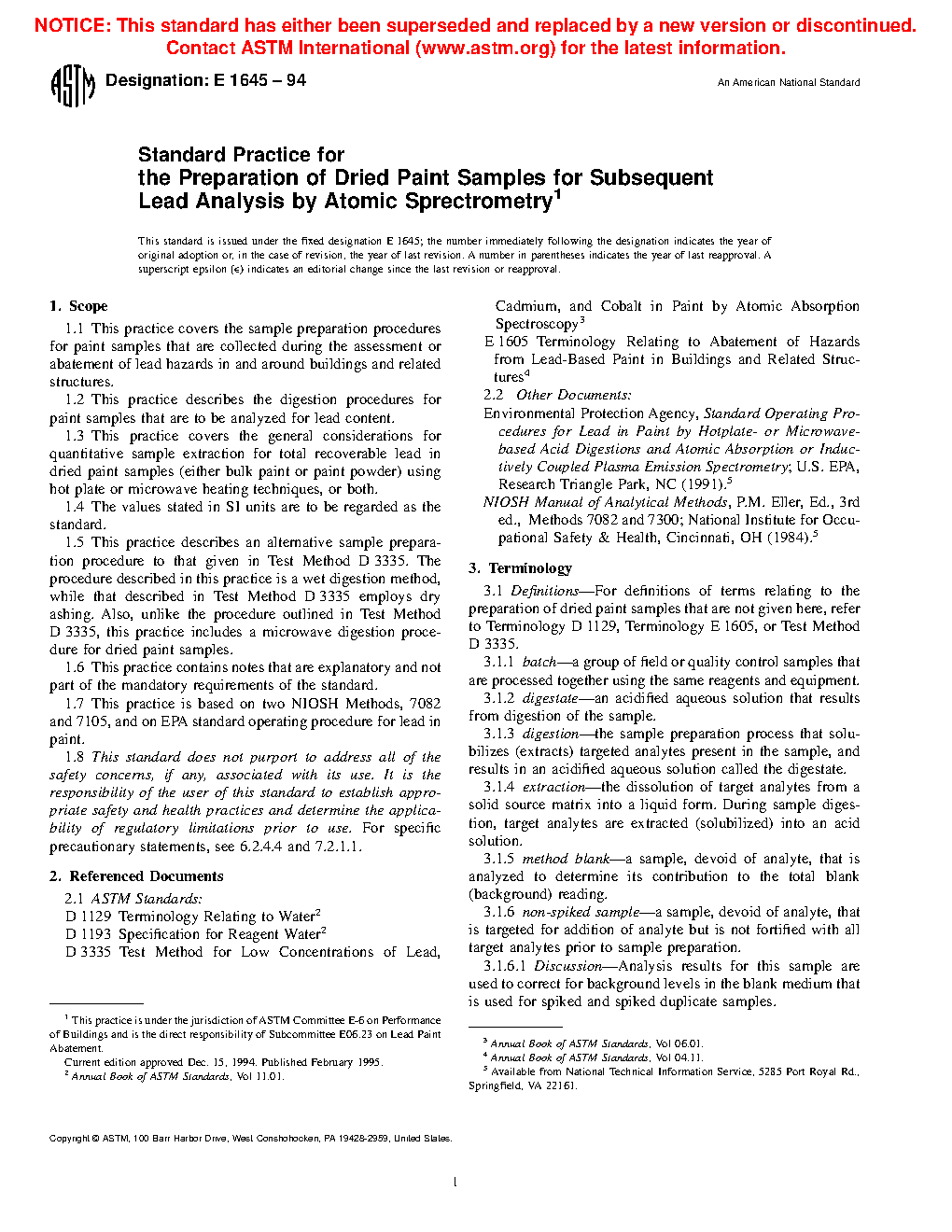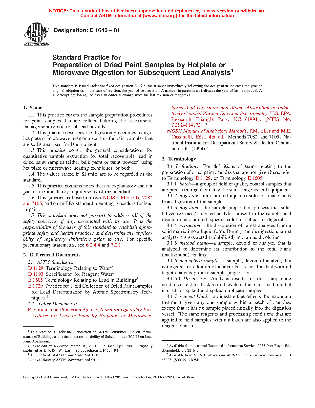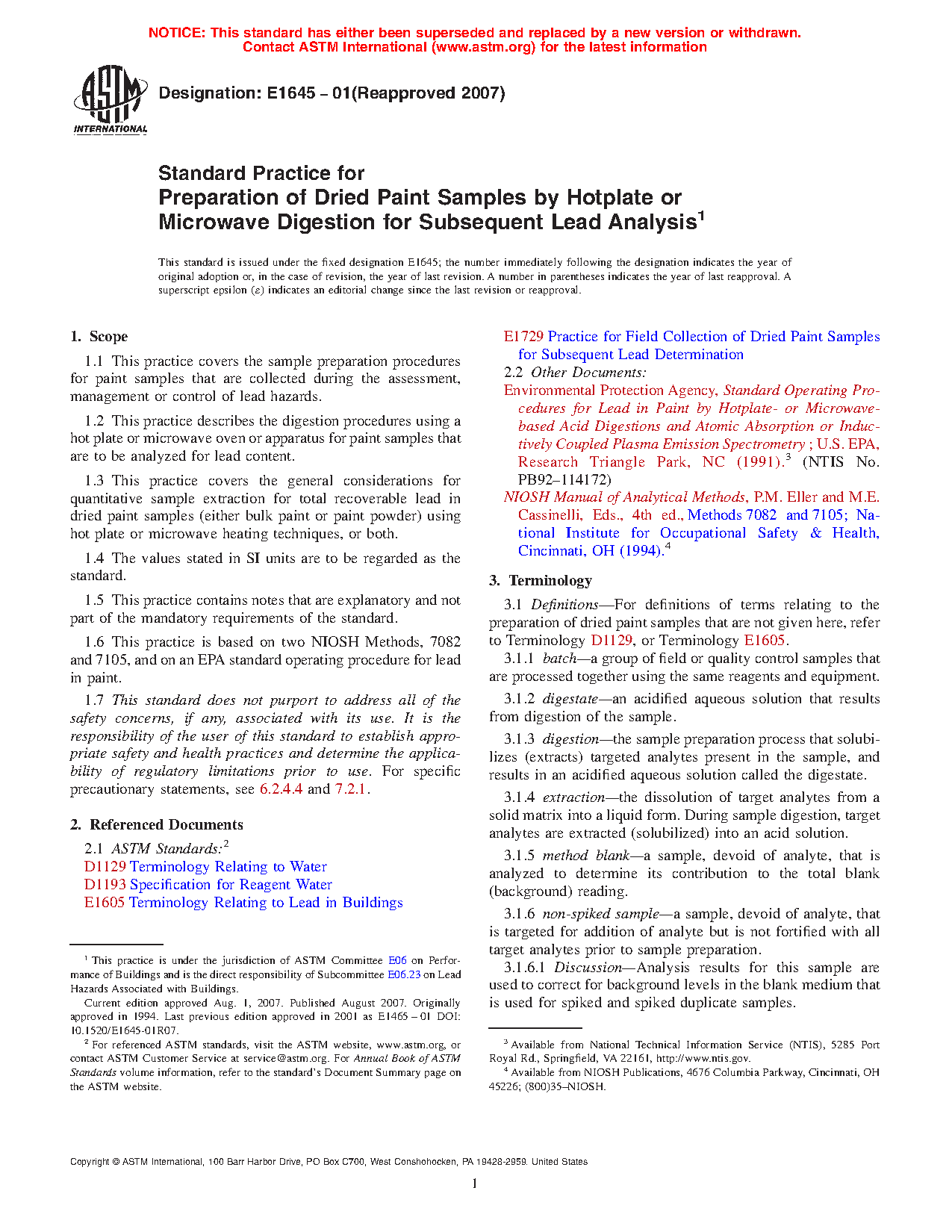 1.5 This practice is based on NIOSH Methods 7082 and 7105, and on an EPA standard operating procedure for lead in paint.