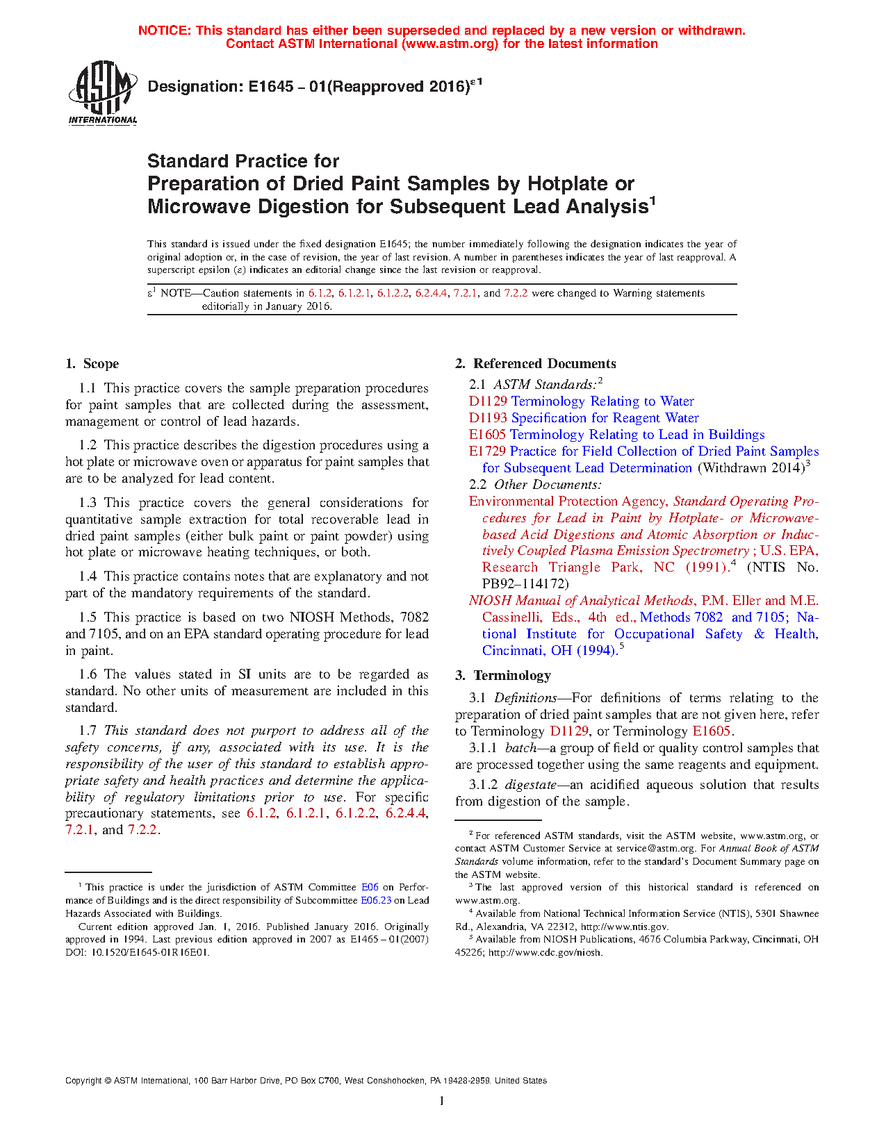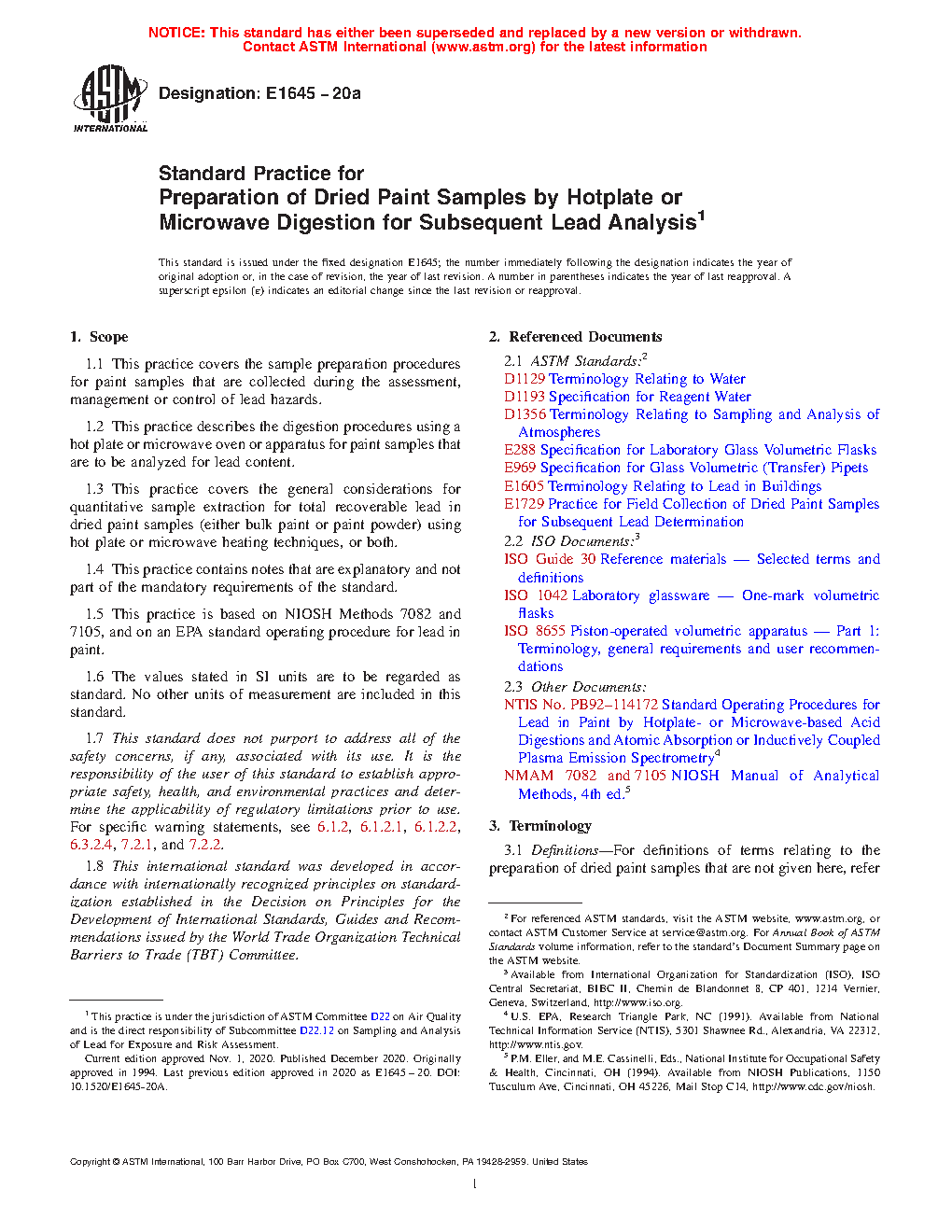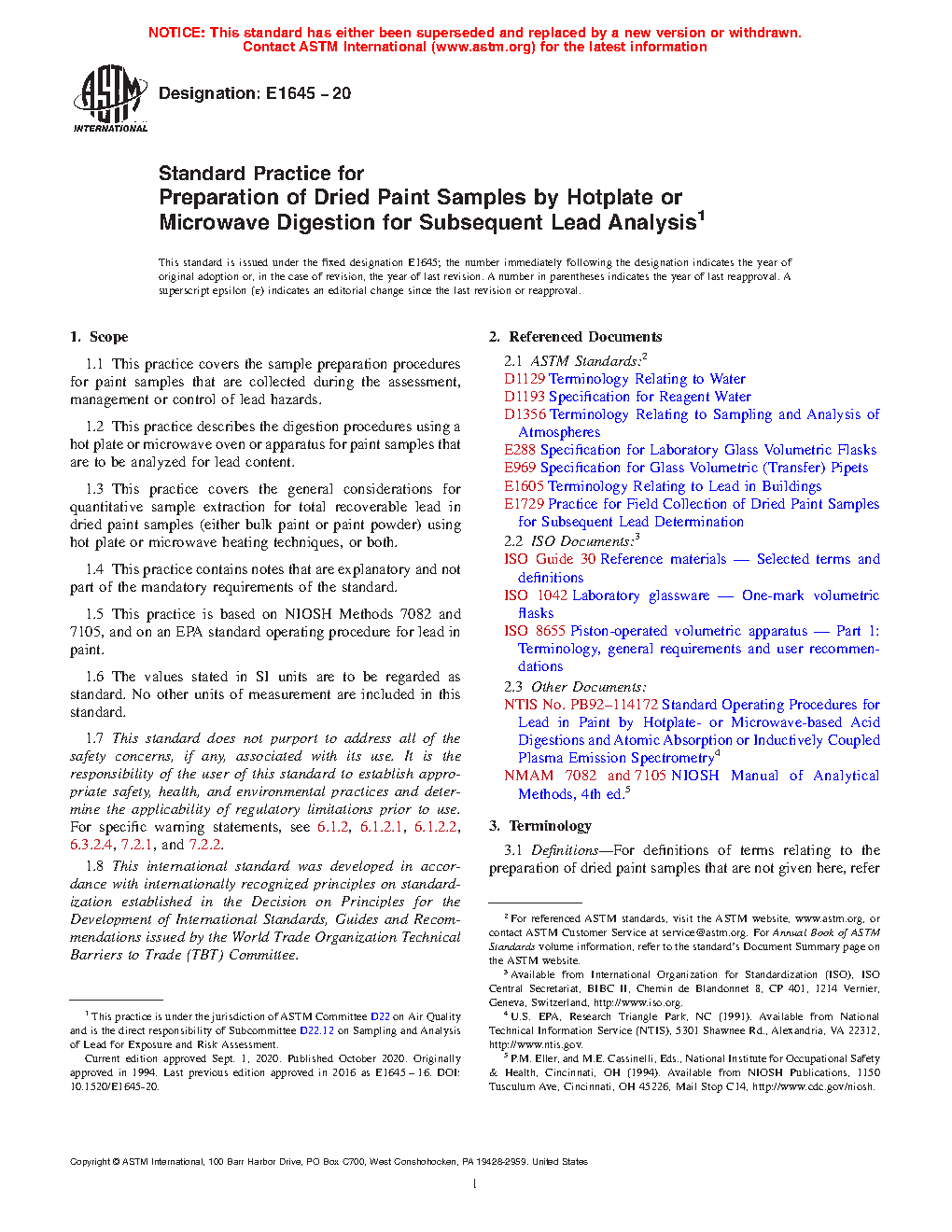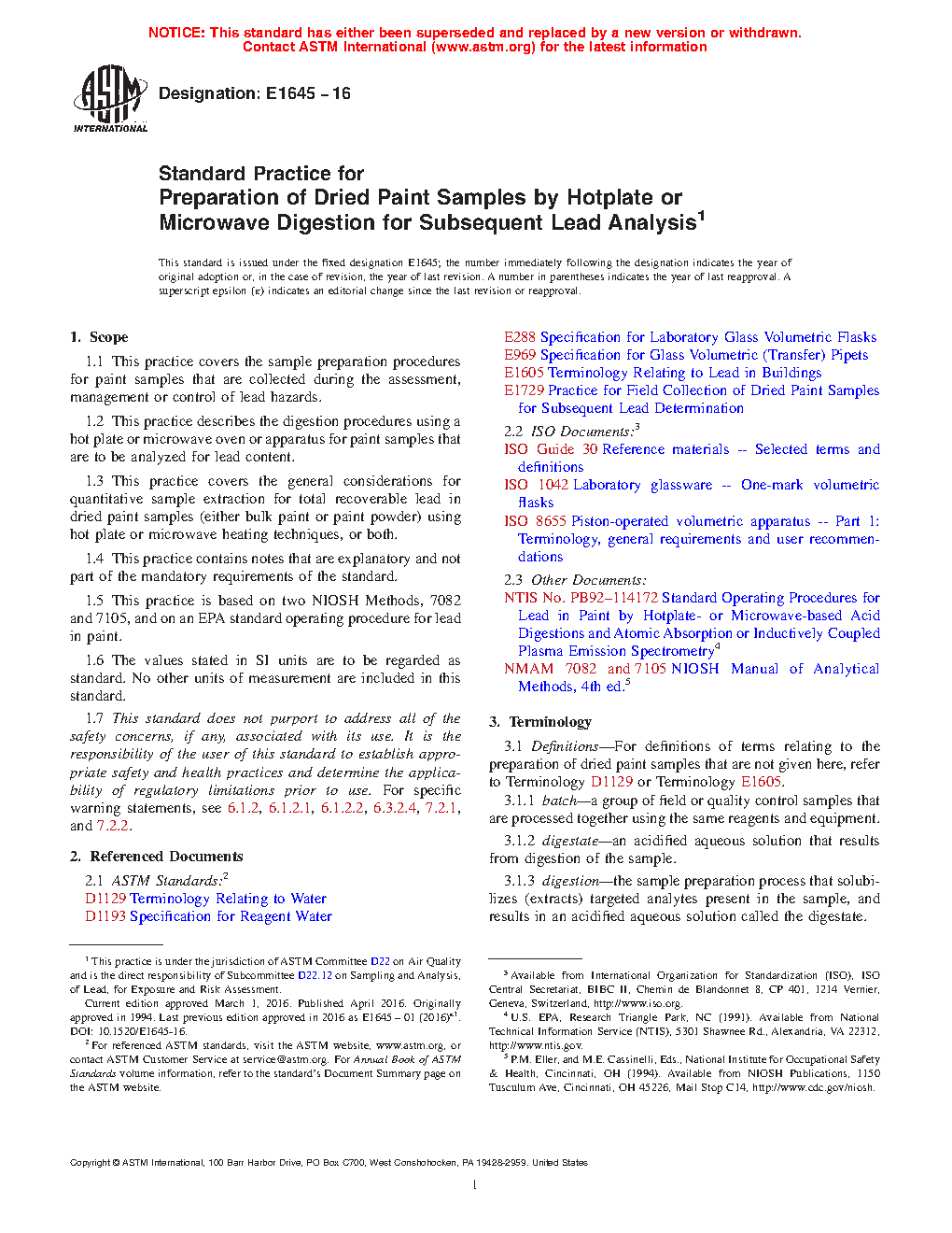 1.5 This practice is based on NIOSH Methods 7082 and 7105, and on an EPA standard operating procedure for lead in paint.