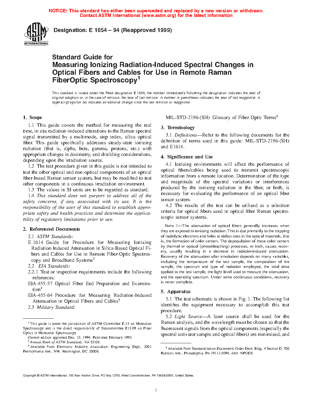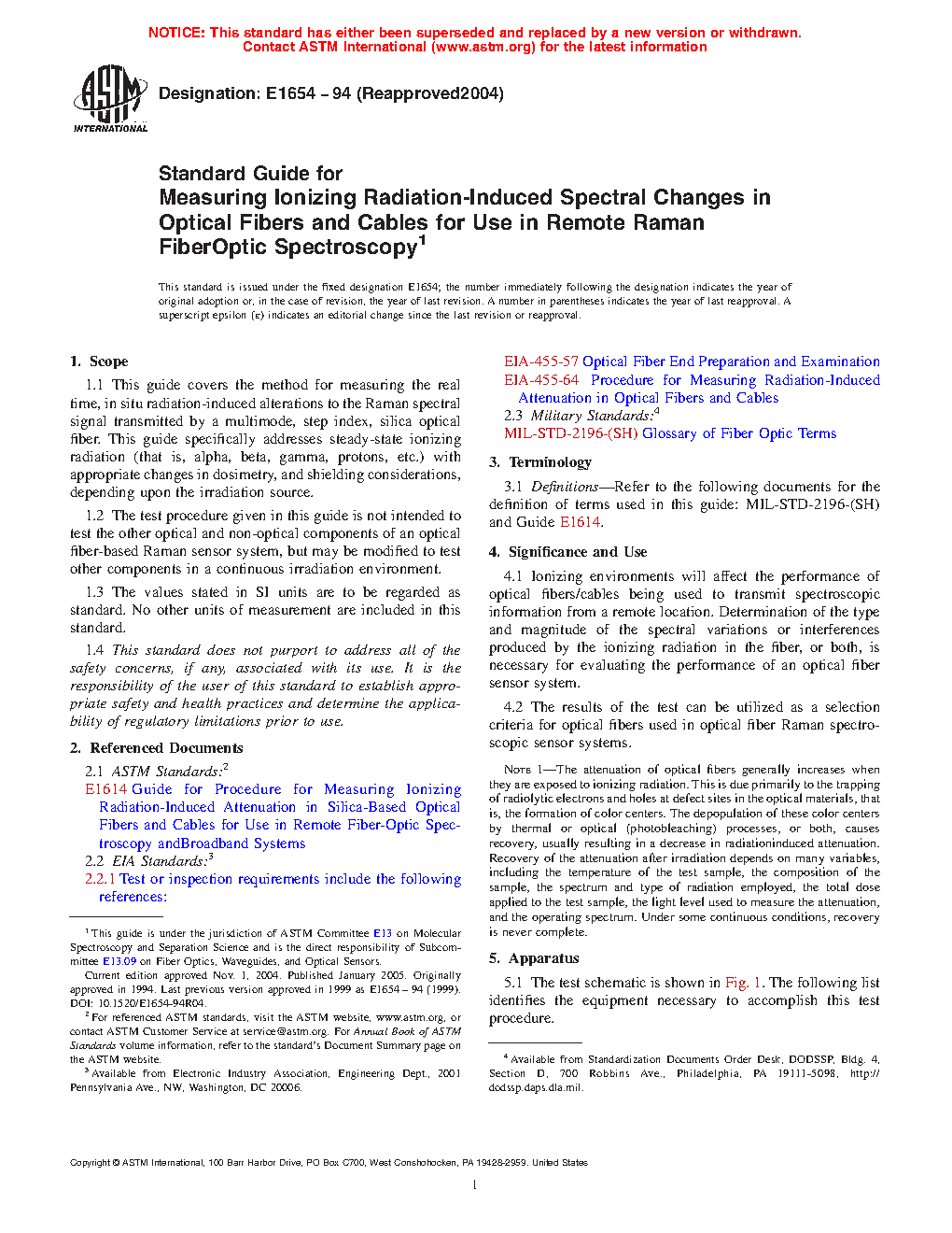 1.2 The test procedure given in this guide is not intended to test the other optical and non-optical components of an optical fiber-based Raman sensor system, but may be modified to test other components in a continuous irradiation environment.