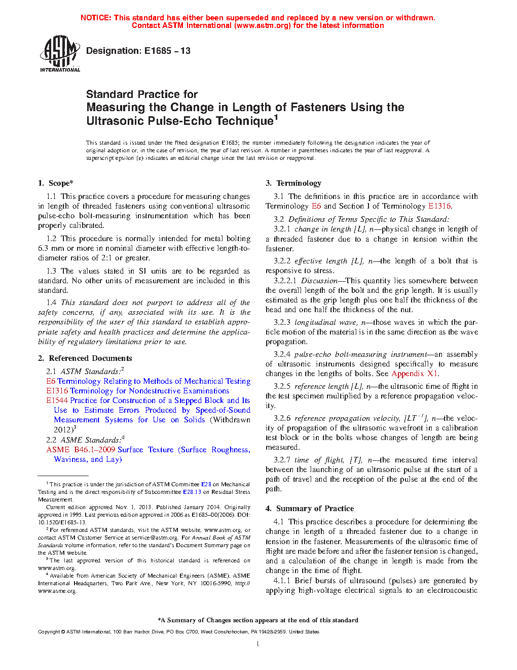 Standard Practice for Measuring the Change in Length of Fasteners Using the Ultrasonic Pulse-Echo Technique