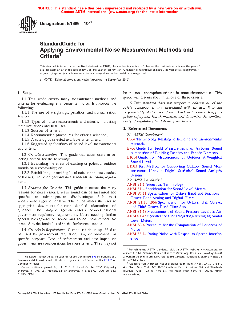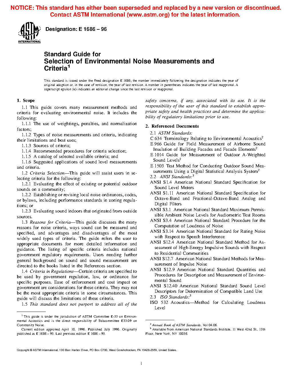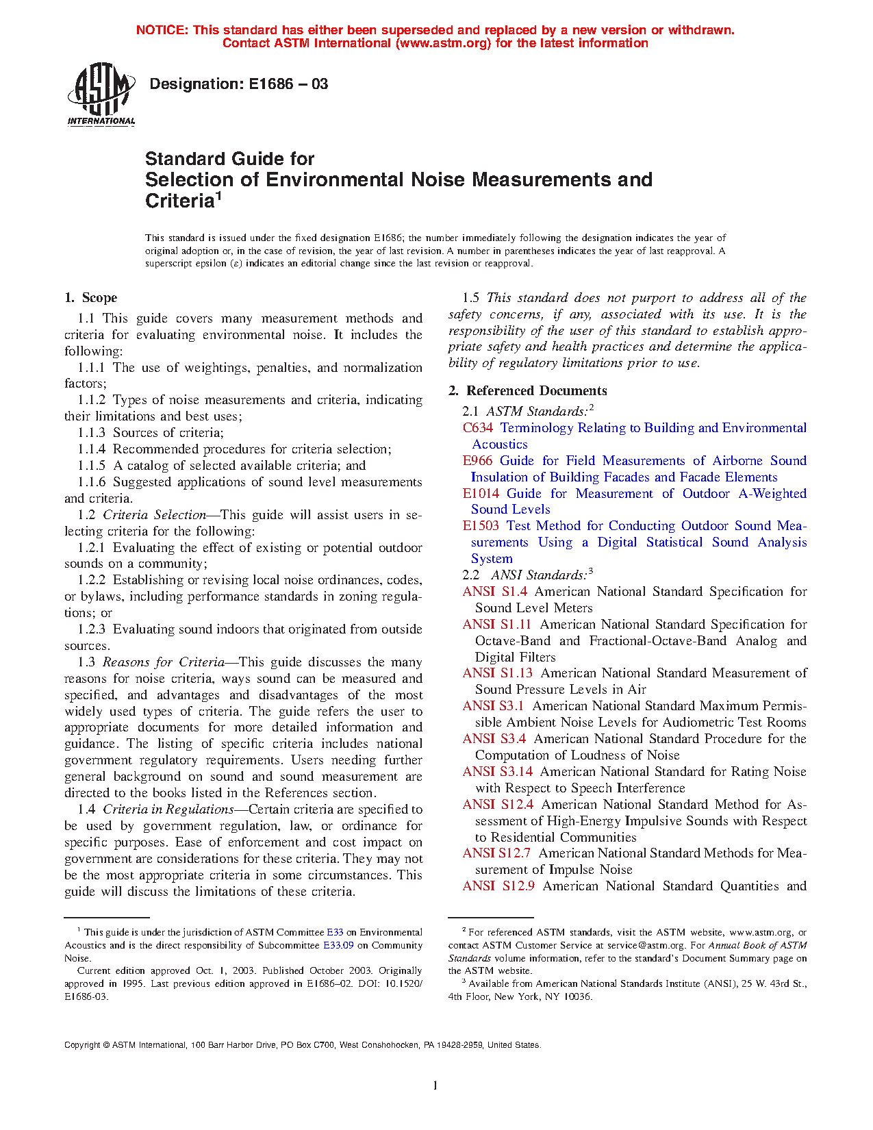 1.1 This guide covers many measurement methods and criteria for evaluating environmental noise. It includes the following: