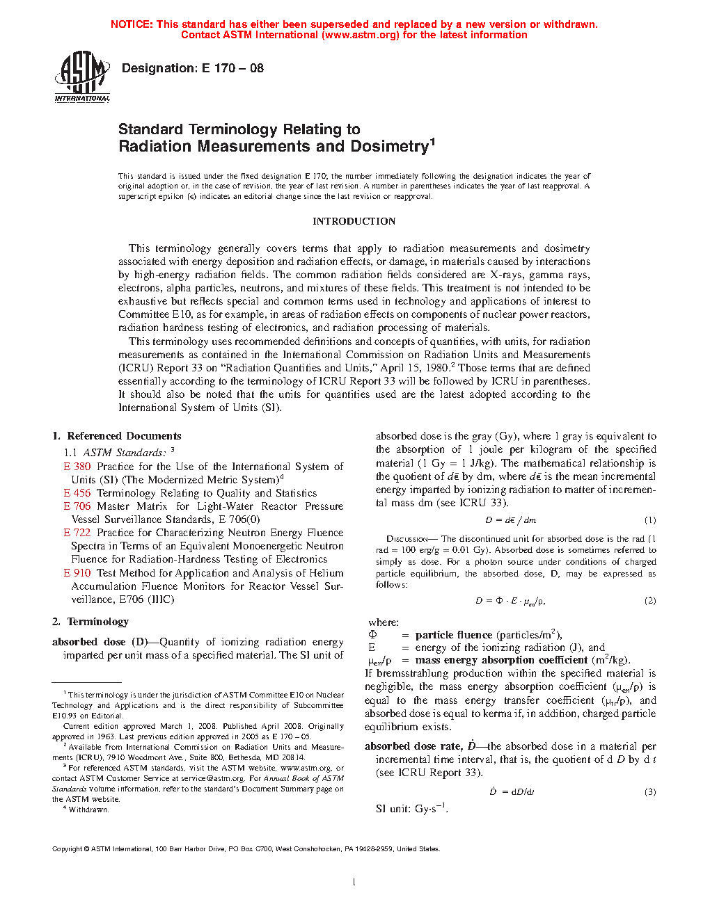 Standard Terminology Relating to Radiation Measurements and Dosimetry