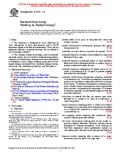 1.2 This standard includes terminology used in biotechnology areas, such as, but not limited to: biological drug products, materials for biotechnology, characterization and identification of biological systems, aseptic sampling, preservation of biological samples, membrane filters, molecular biology, biomass conversion, fuel manufacturing facilities, and fuel analysis.
