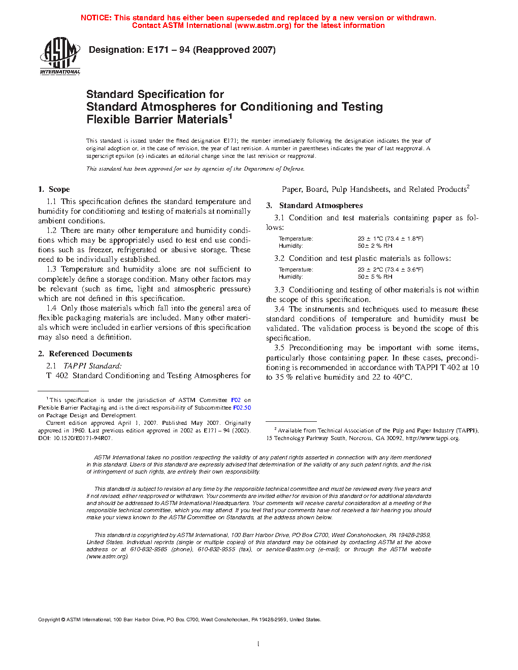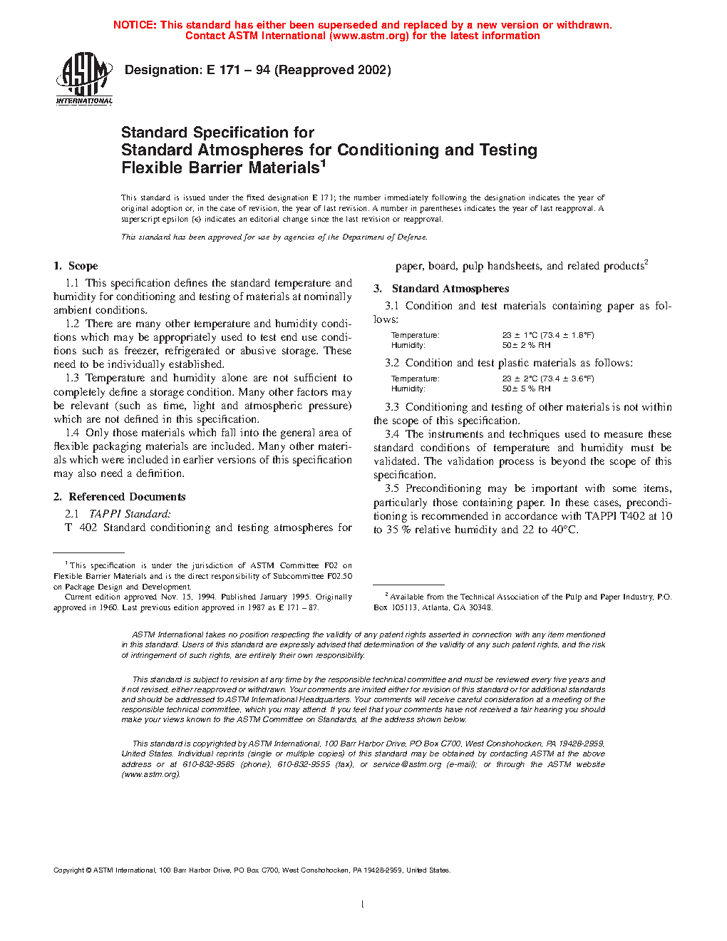 1.1 This specification defines the standard temperature and humidity for conditioning and testing of materials at nominally ambient conditions.