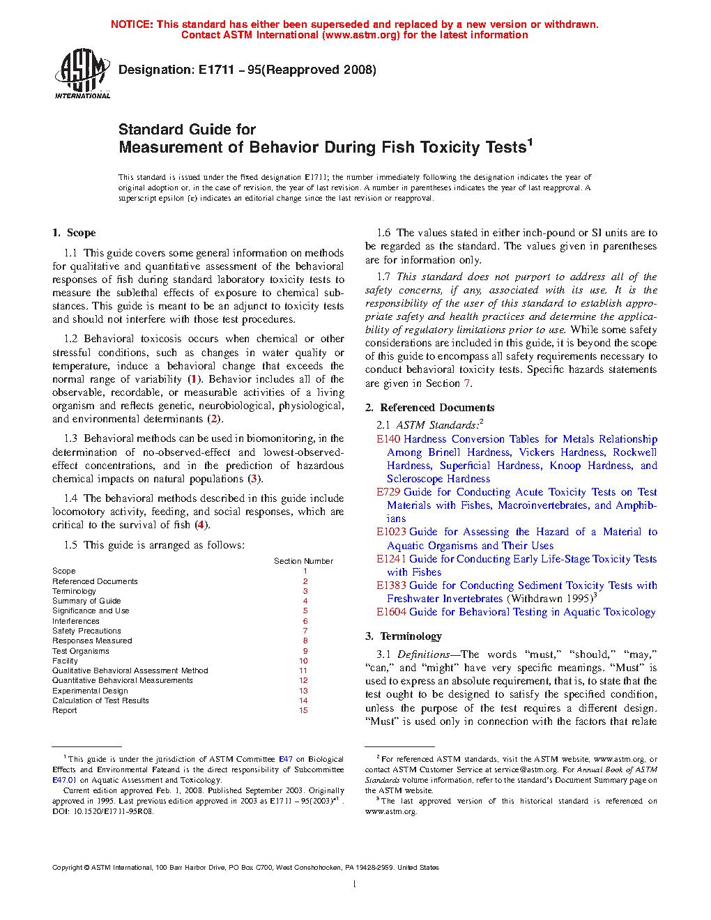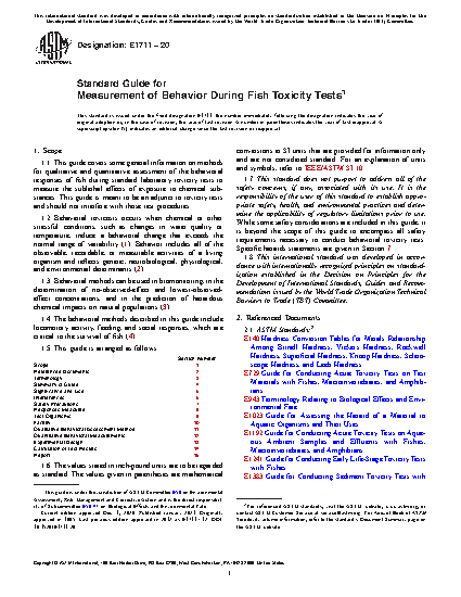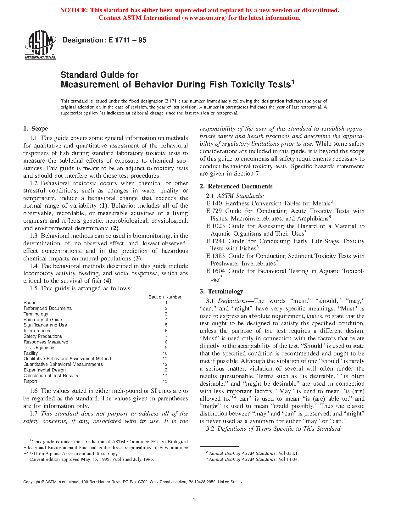 1.4 The behavioral methods described in this guide include locomotory activity, feeding, and social responses, which are critical to the survival of fish (4).