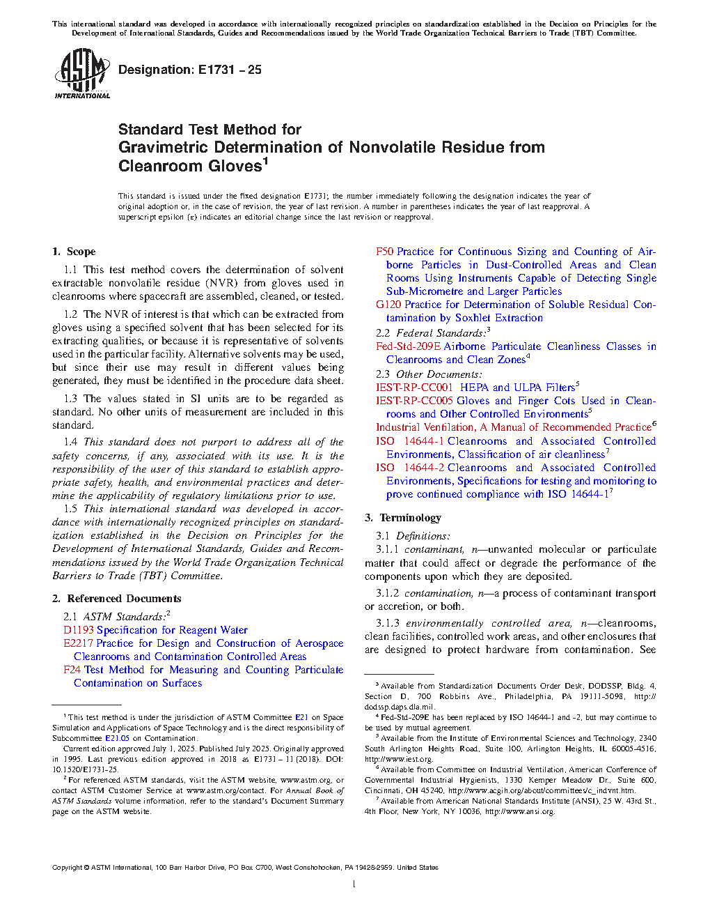 1.1 This test method covers the determination of solvent extractable nonvolatile residue (NVR) from gloves used in cleanrooms where spacecraft are assembled, cleaned, or tested.