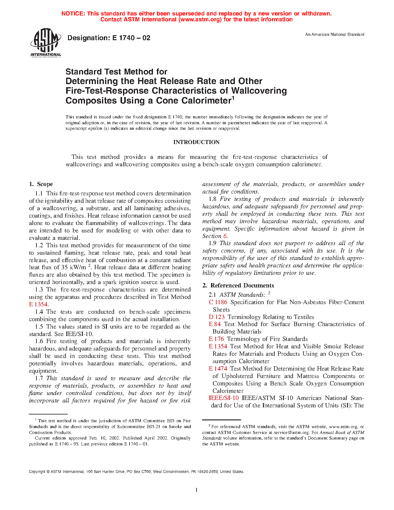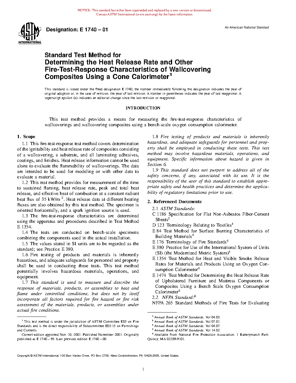 1.6 Fire testing of products and materials is inherently hazardous, and adequate safeguards for personnel and property shall be used in conducting these tests. This test method potentially involves hazardous materials, operations, and equipment.