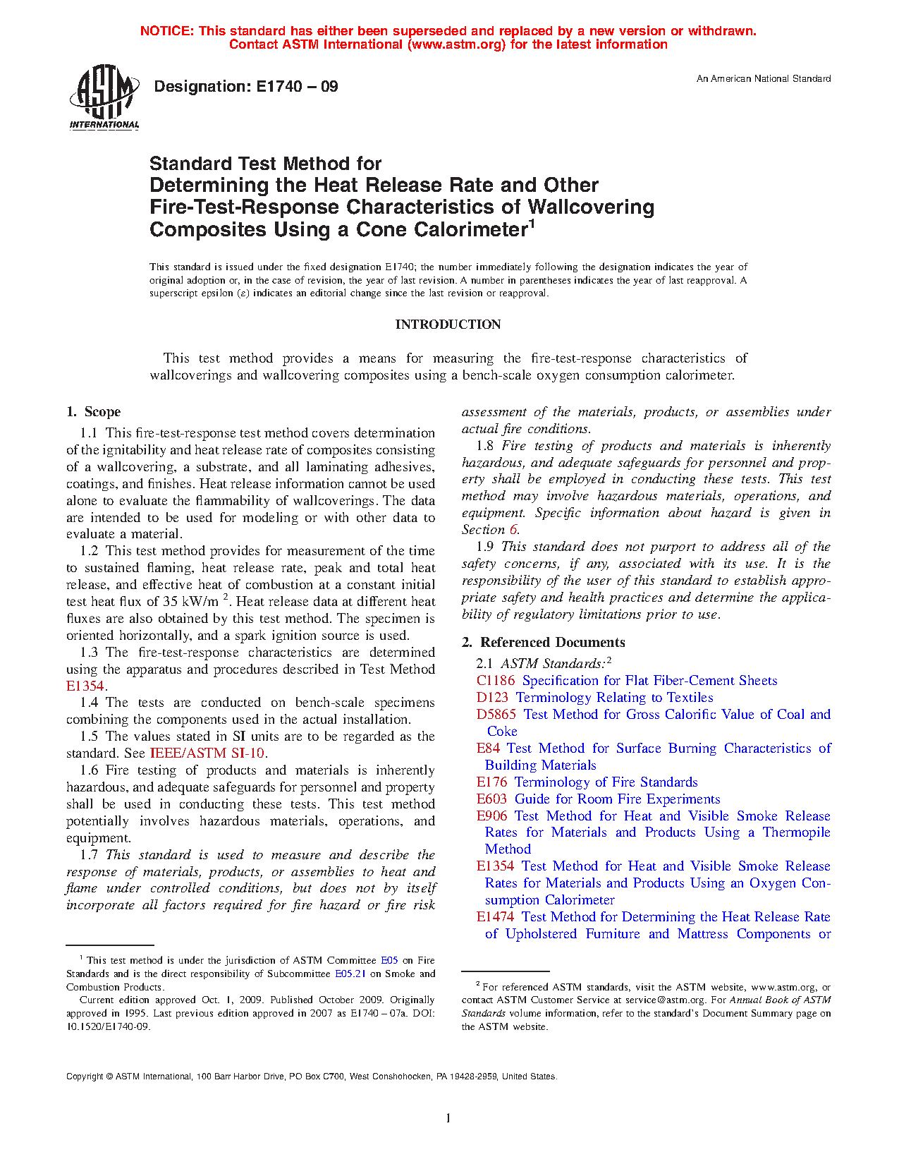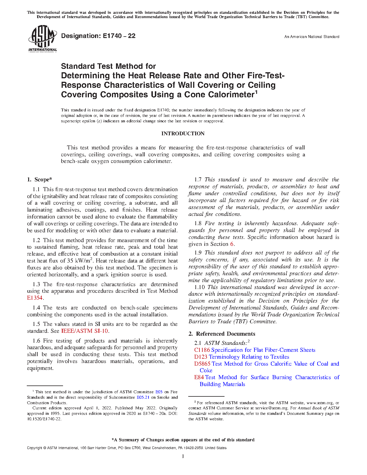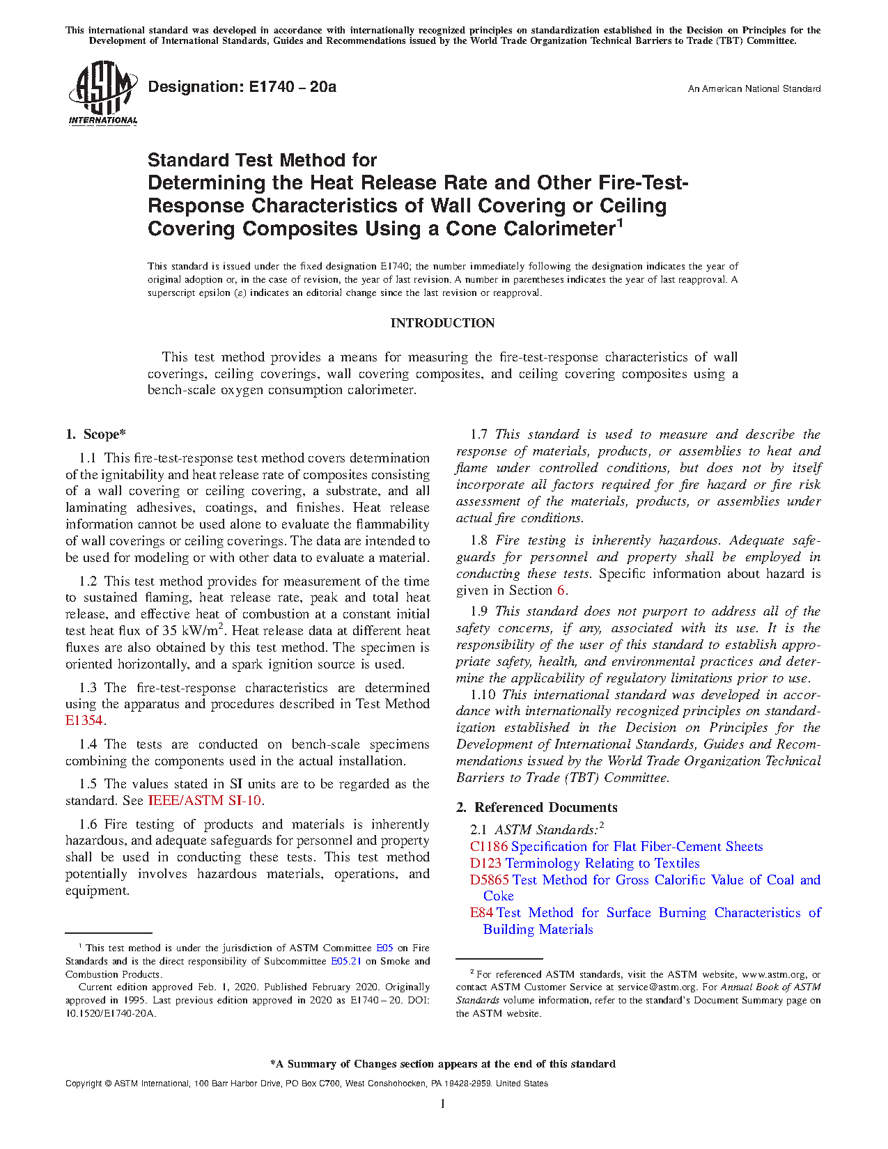 1.3 The fire-test-response characteristics are determined using the apparatus and procedures described in Test Method E1354.