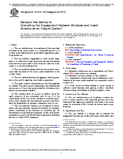 5.5 This test method is not intended for evaluating retention of insect screens for their ability to withstand impacts from windborne debris as might develop during hurricanes or other windstorm events.