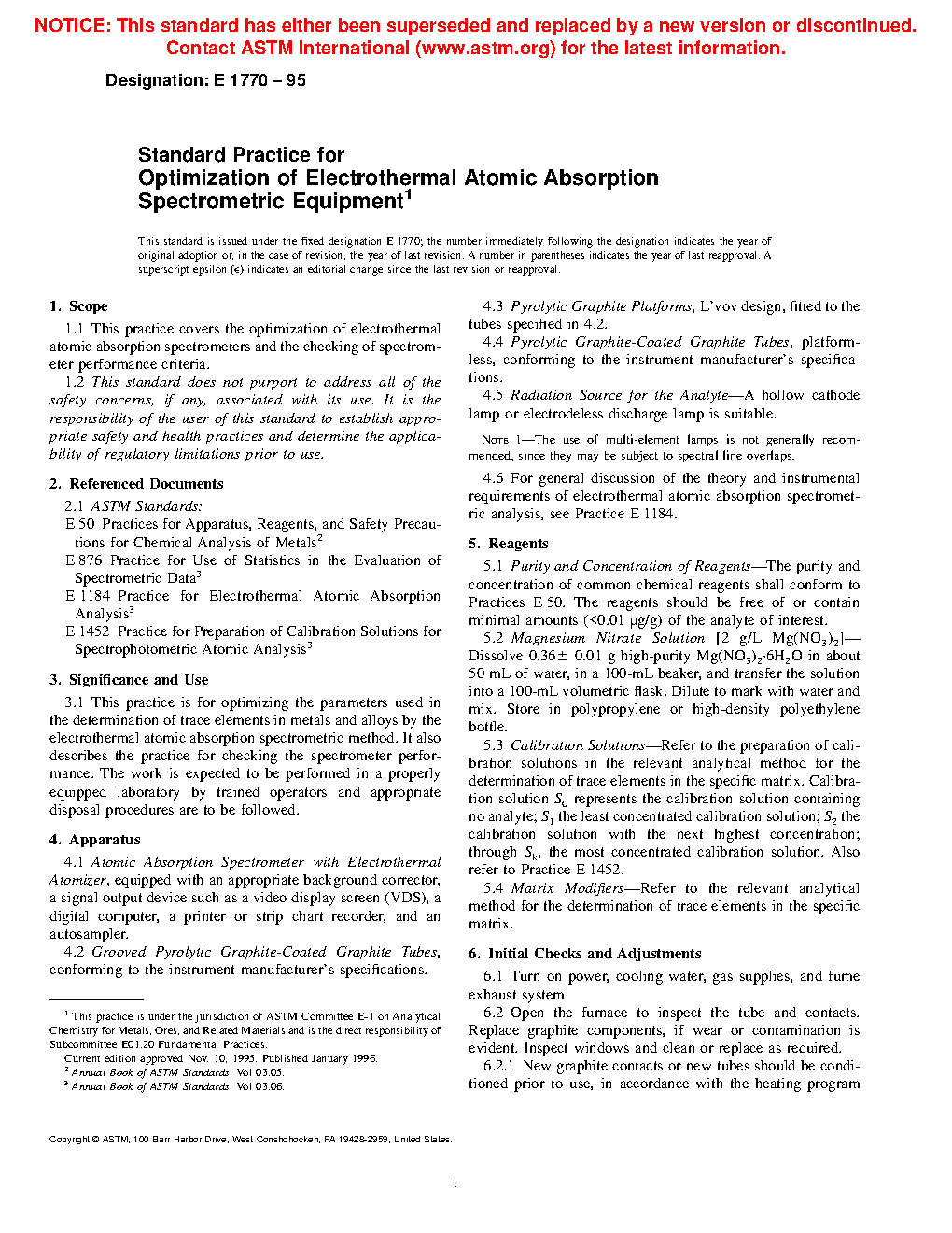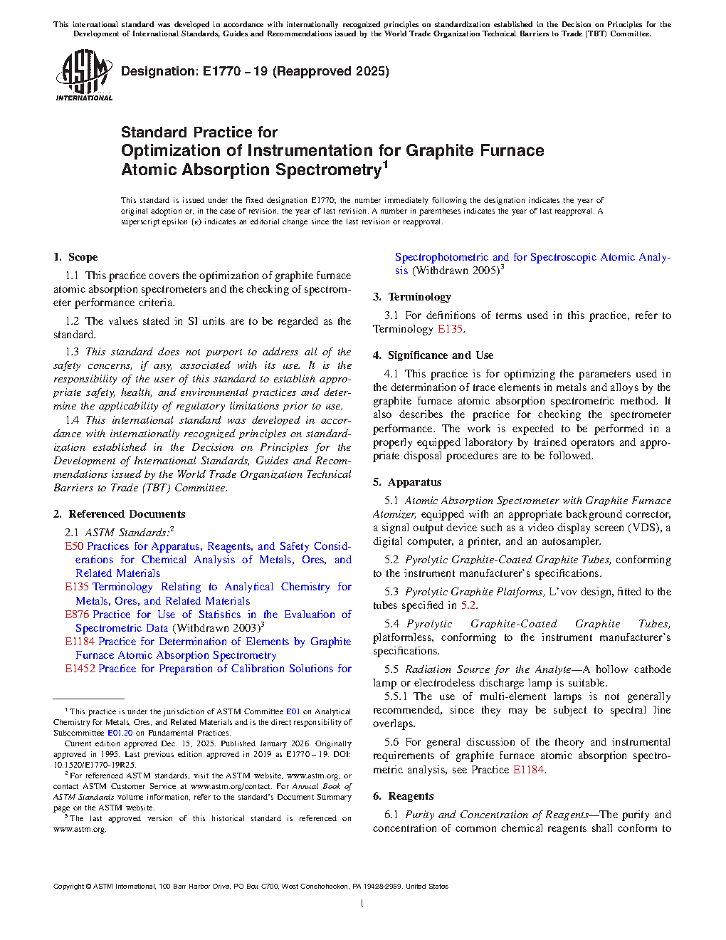 This practice is for optimizing the parameters used in the determination of trace elements in metals and alloys by the electrothermal atomic absorption spectrometric method. It also describes the practice for checking the spectrometer performance. The work is expected to be performed in a properly equipped laboratory by trained operators and appropriate disposal procedures are to be followed.