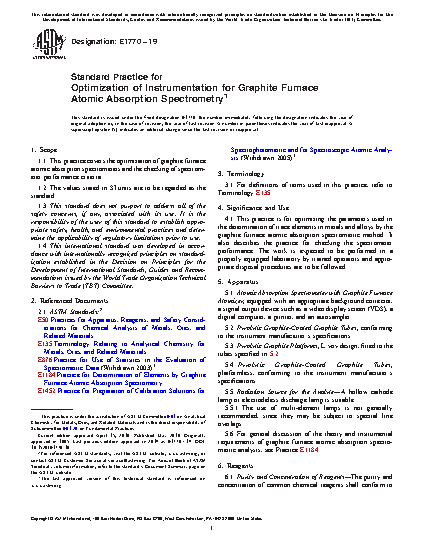 1.1 This practice covers the optimization of electrothermal atomic absorption spectrometers and the checking of spectrometer performance criteria.