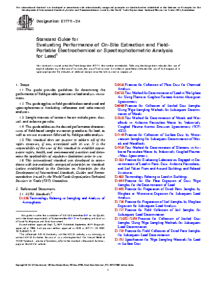 1.4 This guide addresses the desired performance characteristics of field-based sample extraction procedures for lead, as well as on-site extraction followed by field-portable analysis.