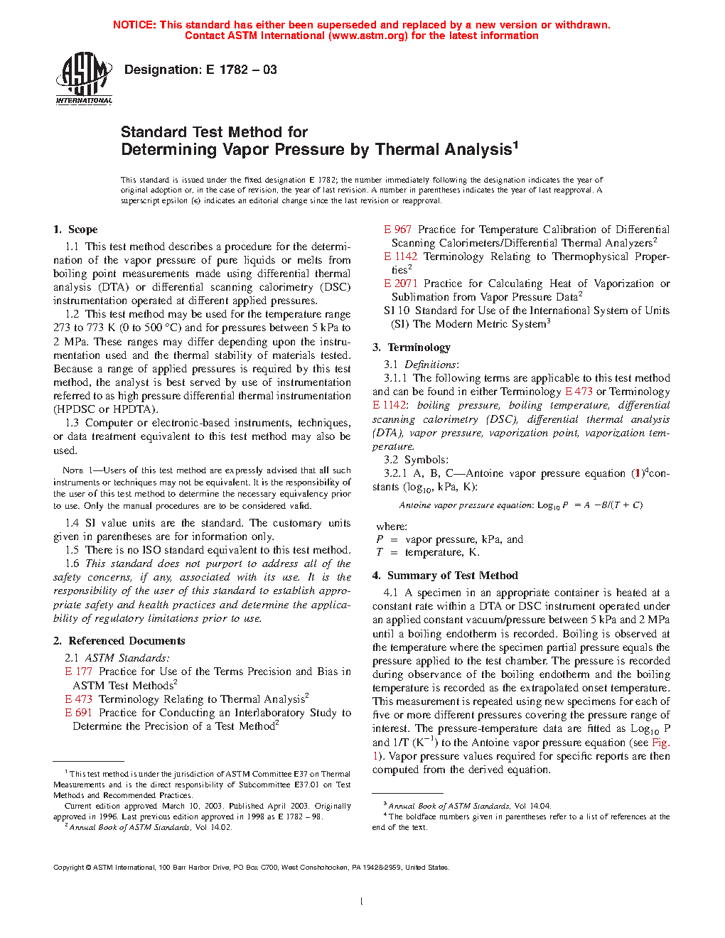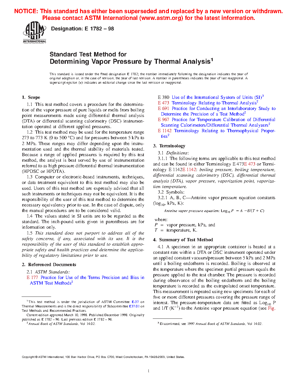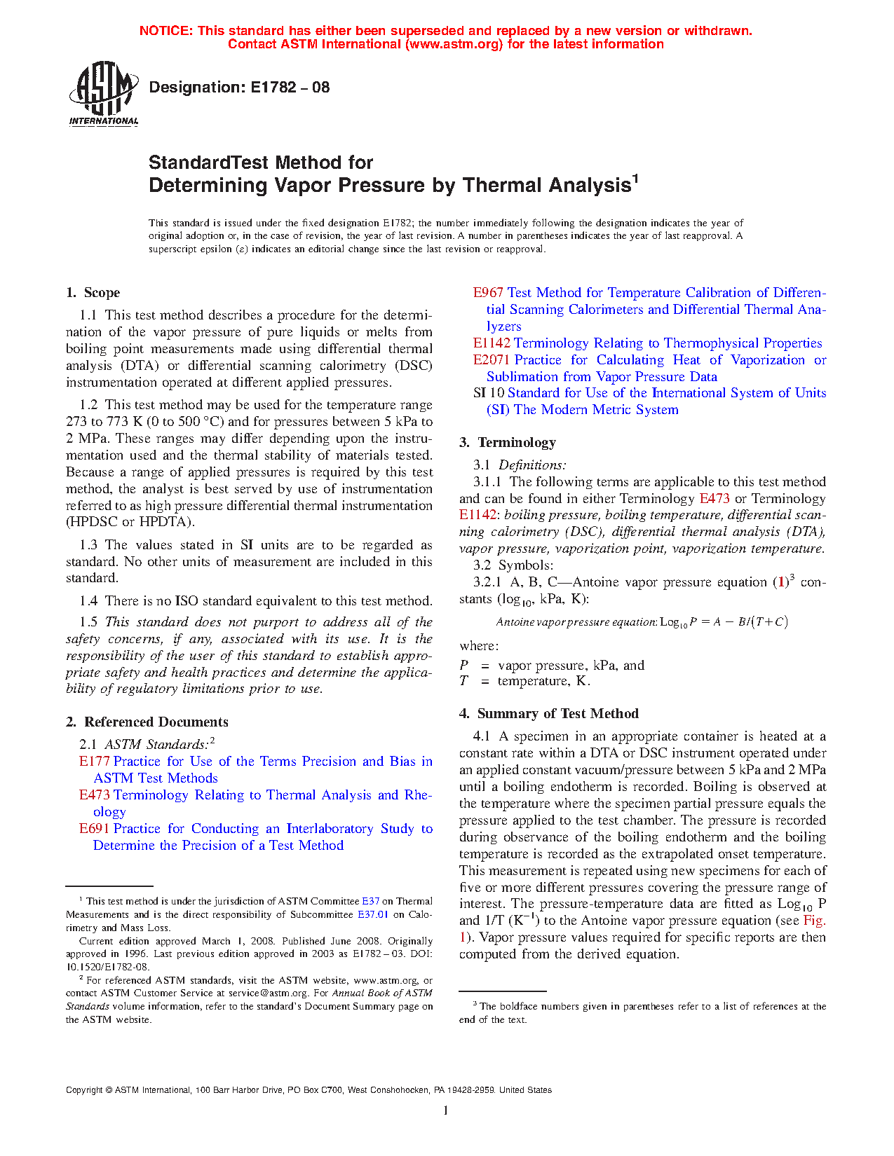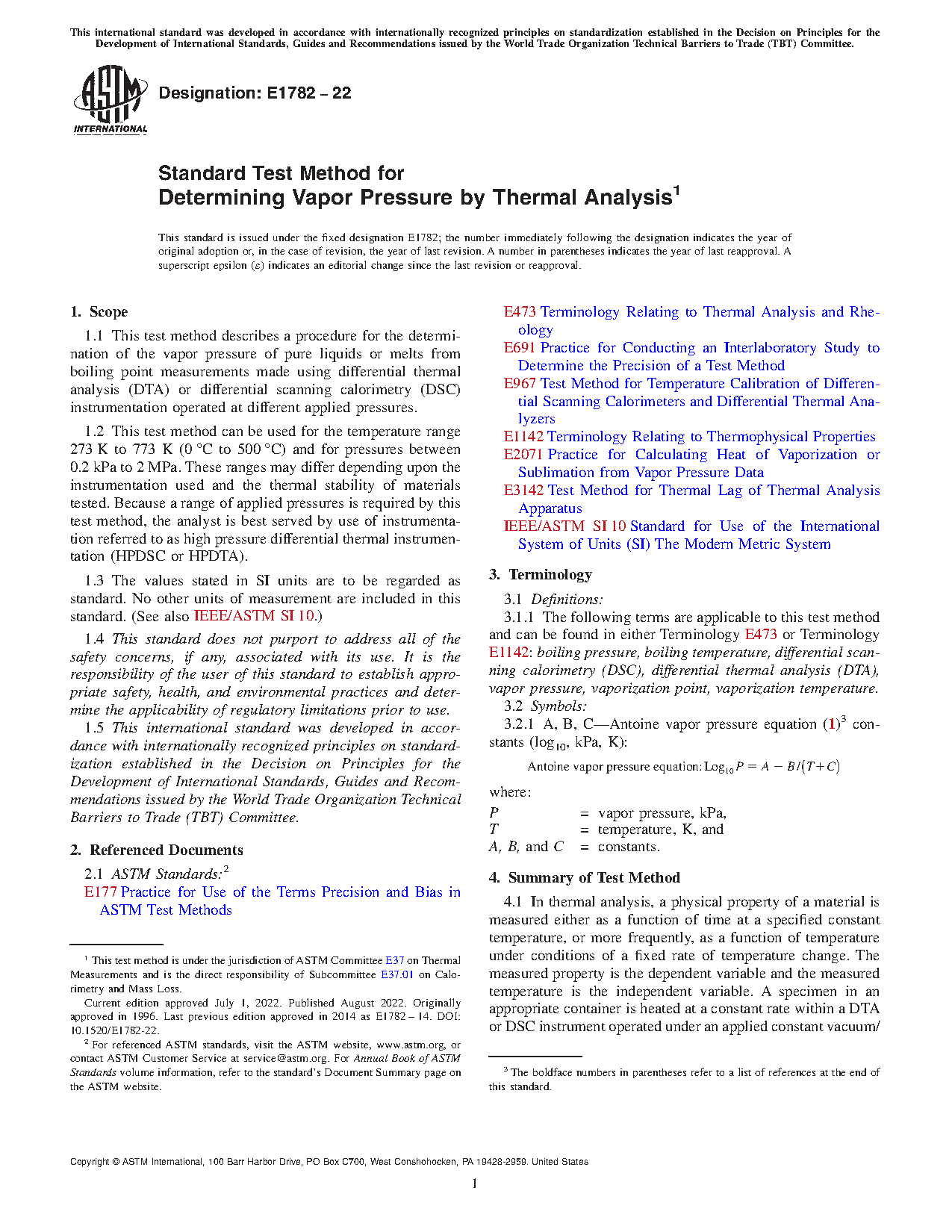 1.2 This test method may be used for the temperature range 273 to 773 K (0 to 500°C) and for pressures between 0.2 kPa to 2 MPa. These ranges may differ depending upon the instrumentation used and the thermal stability of materials tested. Because a range of applied pressures is required by this test method, the analyst is best served by use of instrumentation referred to as high pressure differential thermal instrumentation (HPDSC or HPDTA).