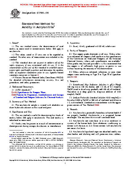 1.1 This test method covers the determination of total acidity as acetic acid in concentrations below 500 μg/g in acrylonitrile.
