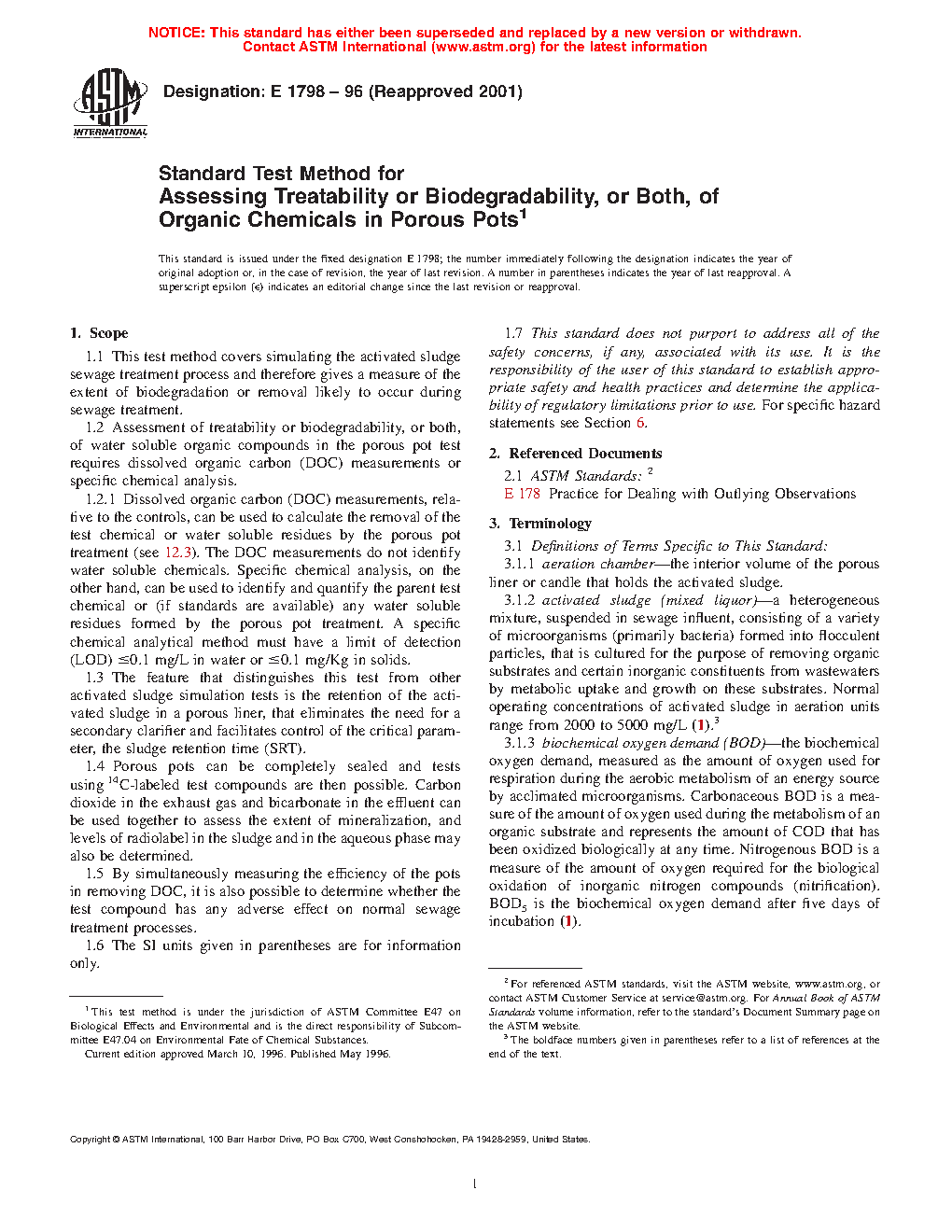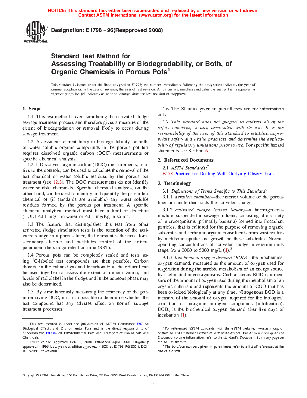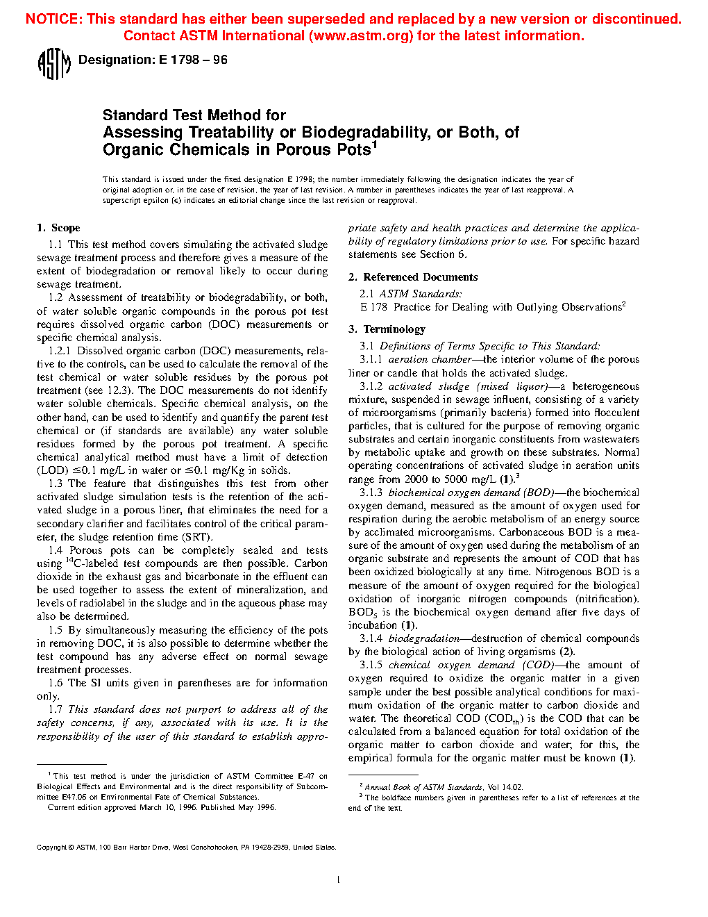 1.2 assessment of treatability or biodegradability, or both, of water soluable organic compounds in the porous pot test requires dissolved organic carbon (DOC) measurements or specific chemical analysis.