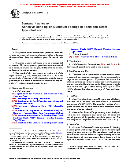 4.1 The formation of reproducible, durable adhesive bonds in structural units requires great care in the performance of the steps in the bonding process. Experience has shown that adhesive bonding carried out in accordance with this practice produces reproducible adhesive bonds. This practice is applicable to both the Type 1, 160 °F (71 °C), and Type 2, 200 °F (93 °C), elevated humidity service type of foam and beam shelter.