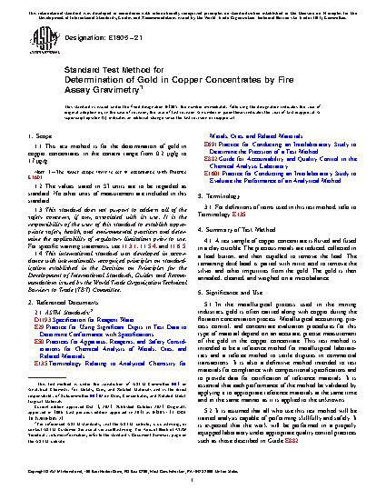 Standard Test Method for Fire Assay Determination of Gold in Copper Concentrates by Gravimetry