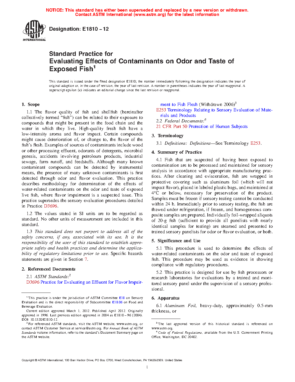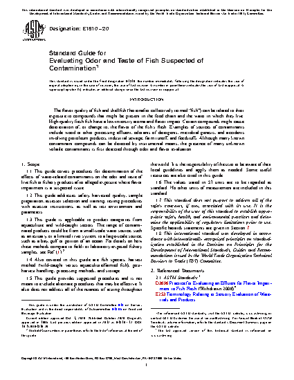 1.1 This guide covers procedures for determination of the effects of water-related contaminants on the odor and taste of live fish or fishery products after alleged exposure where flavor impairment is a suspected issue.